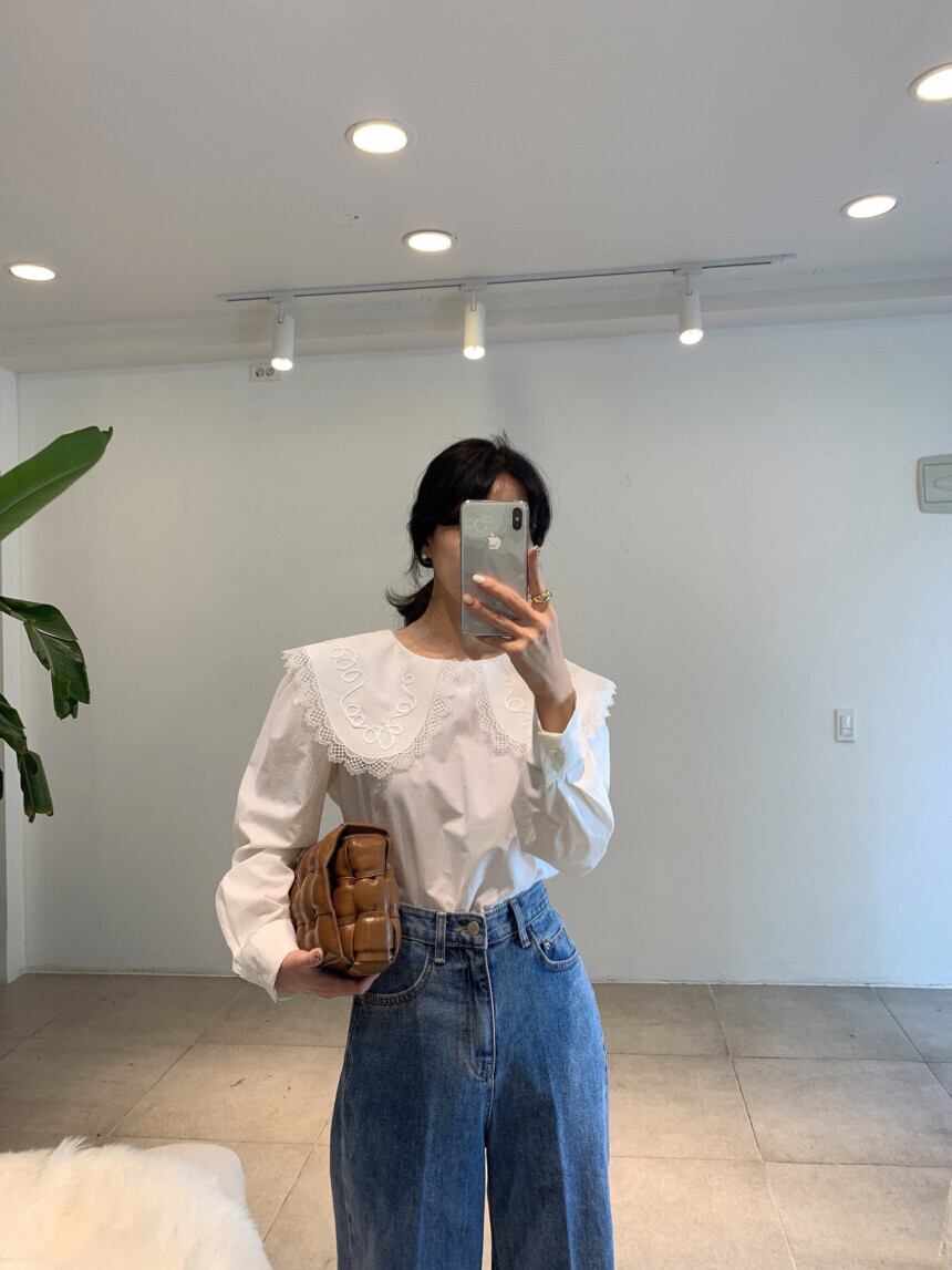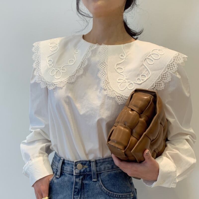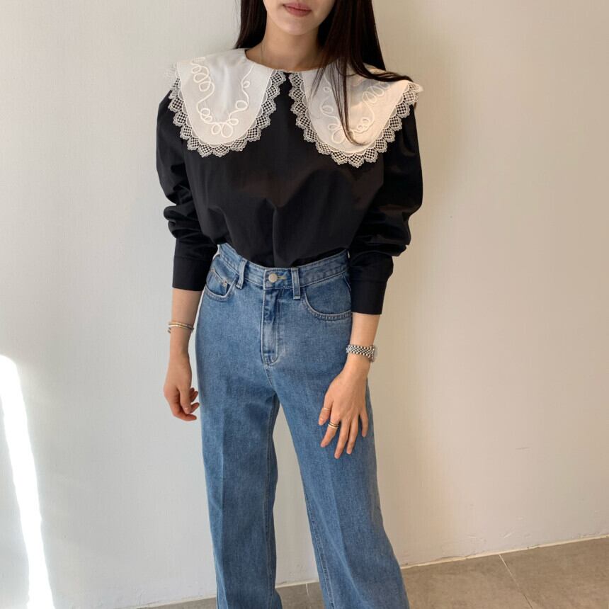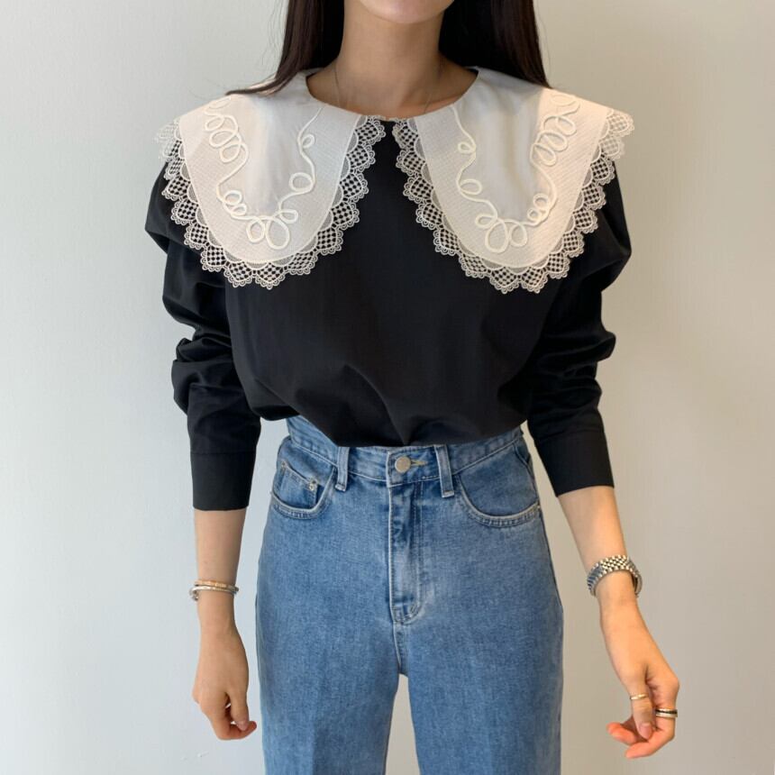 スプリングカラーレースシャツ ブラウス レディース 春物 ステッチ 韓国婦人50965524334