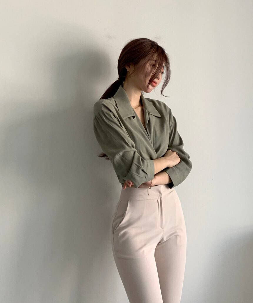 クロスサイドウェストスリムショートシャツ トップス レディース 韓国婦人21449444324