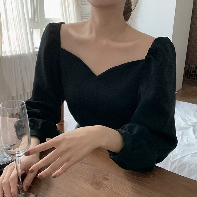 スタンダードシャツ カラートップス レディース ロング ランタンスリーブ レトロ スクウェア 韓国婦人12982544538