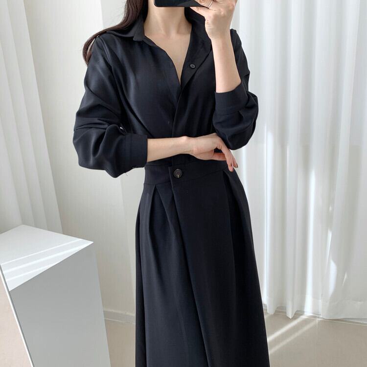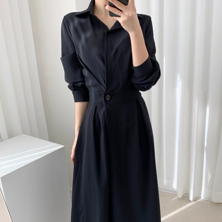 オータムバックルプリーツウェストロングドレス レディース 秋物 韓国婦人25672591120