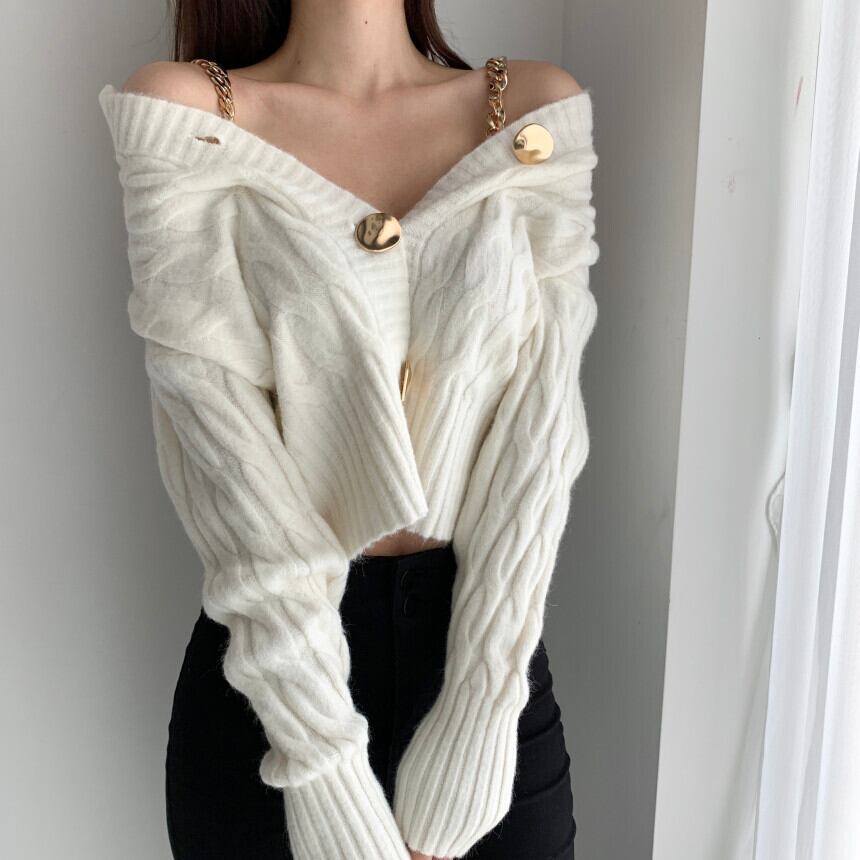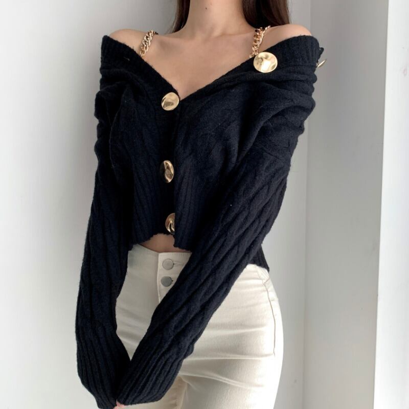 スタンダードパターンメタルソリッド カラーカーディガンセーター レトロ ソリッドカラー 韓国婦人28177894473