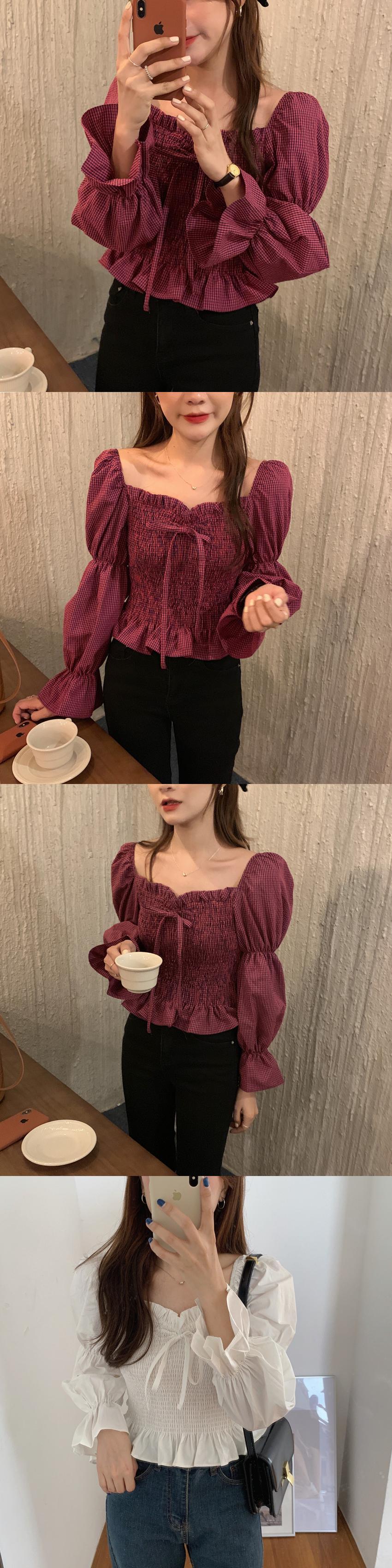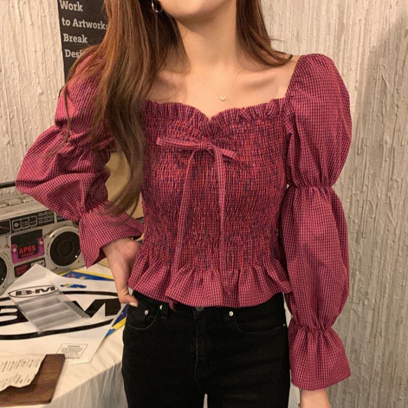 スプリングシャツ 格子柄長袖スリーブトップス ロング 春物 韓国婦人67573298078