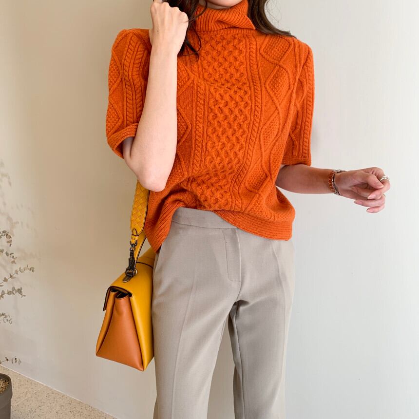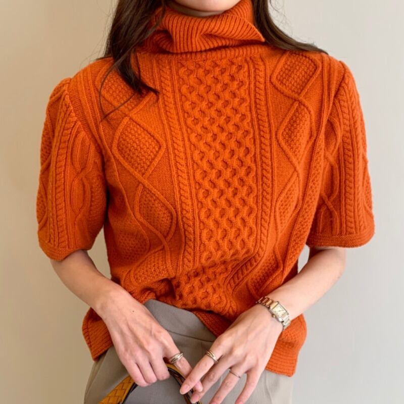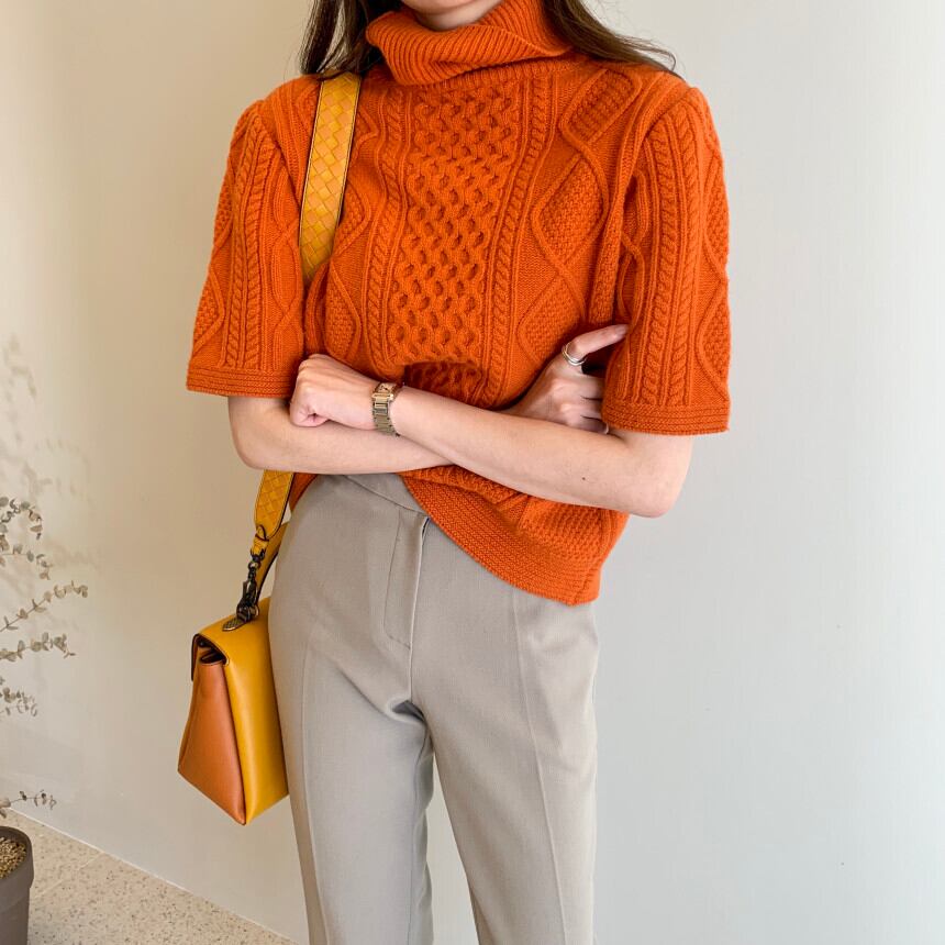 プルオーバー カラースリーブスタンダードパターンホワイトオレンジレッドニットセーター レディース レトロ 韓国婦人79048926435