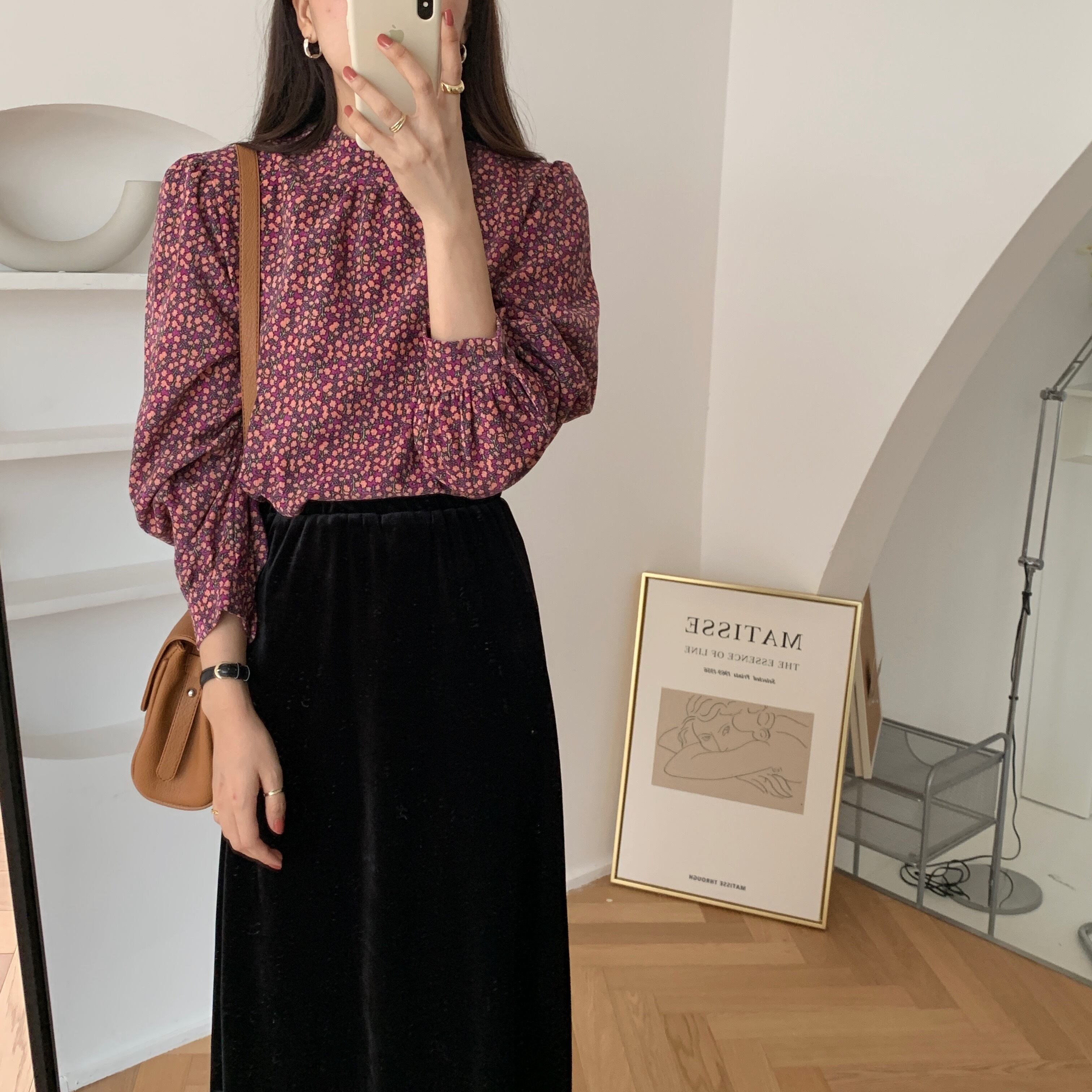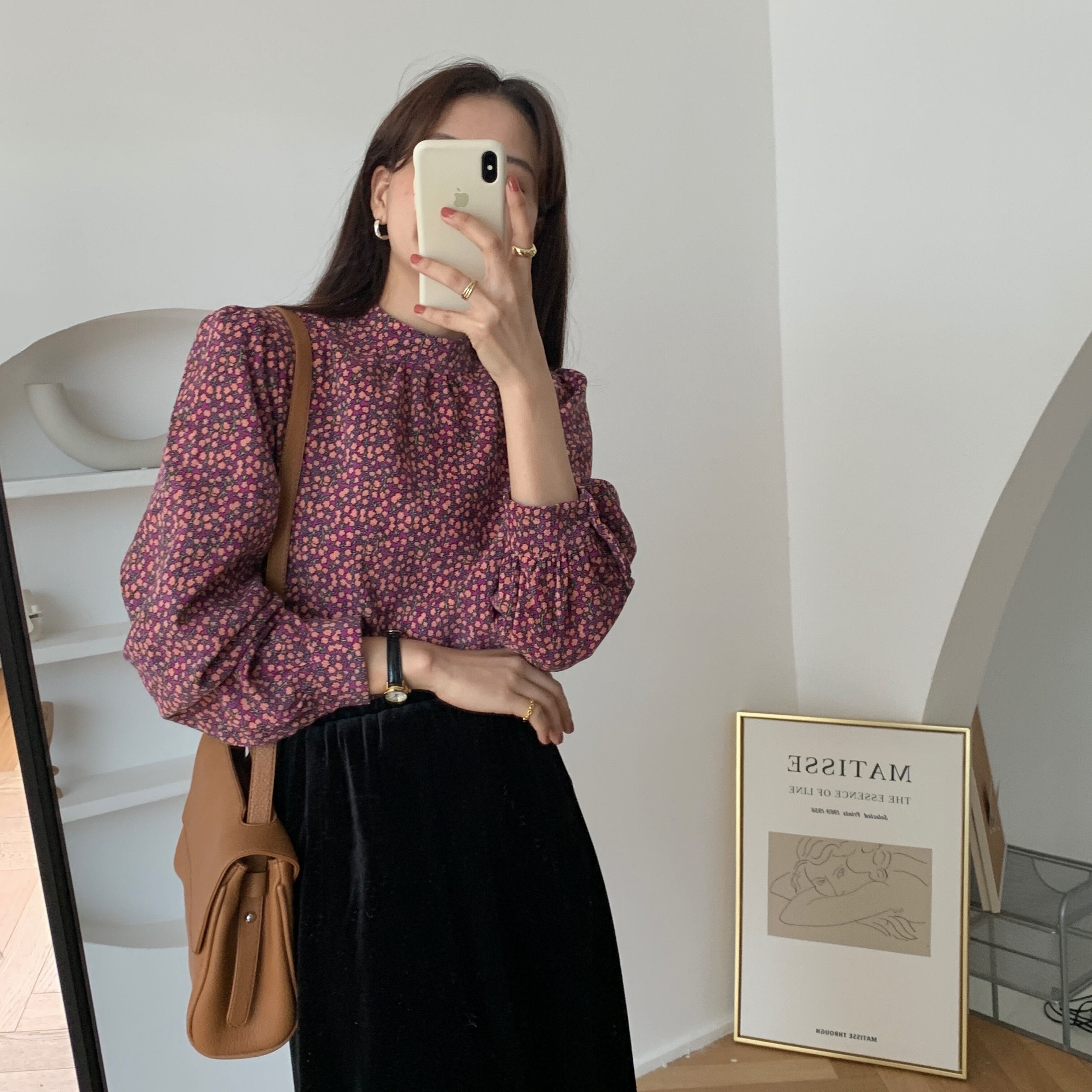 スタンダードシャツ スプリングコーデュロイフローラルルーズ ロング レトロ 春物 花柄 韓国婦人18372253615