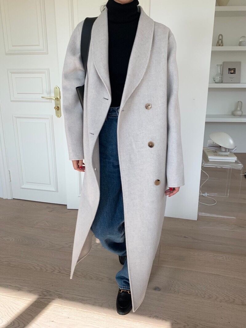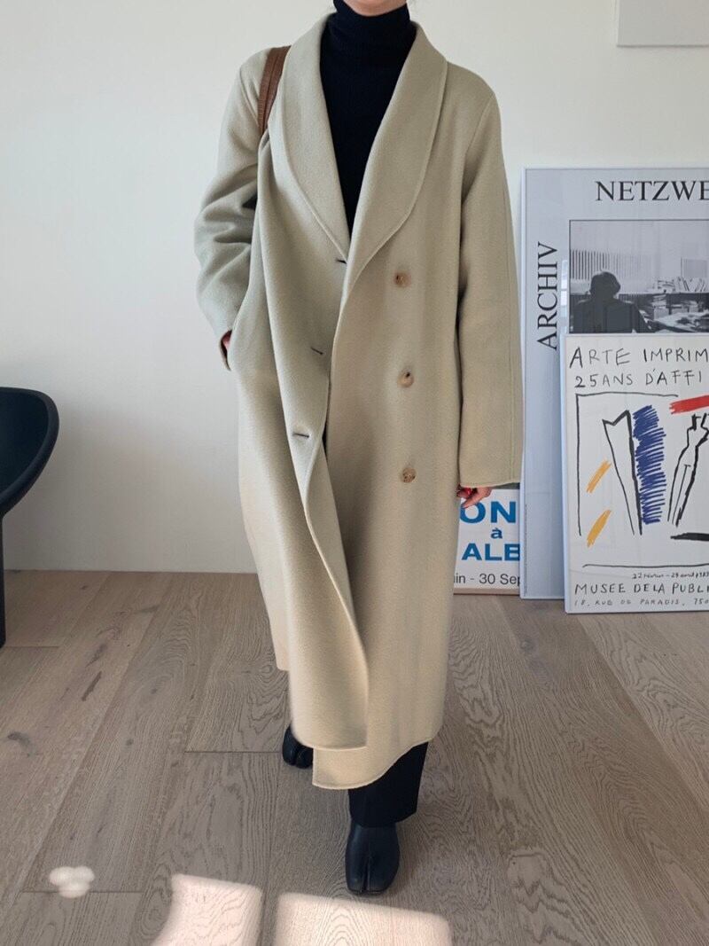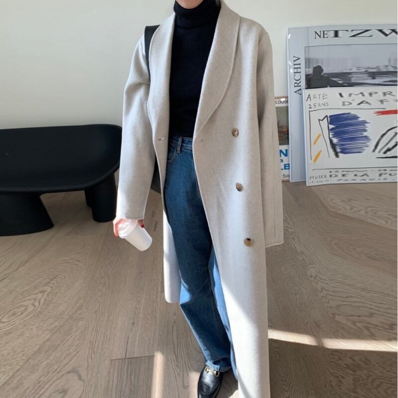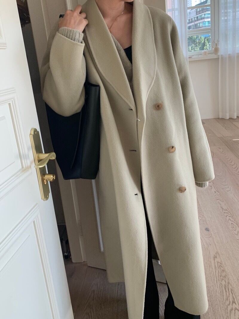 スプリングオータムカラーダブルブレストロングコート ルーズレディース 春物 秋物 韓国婦人81426558596