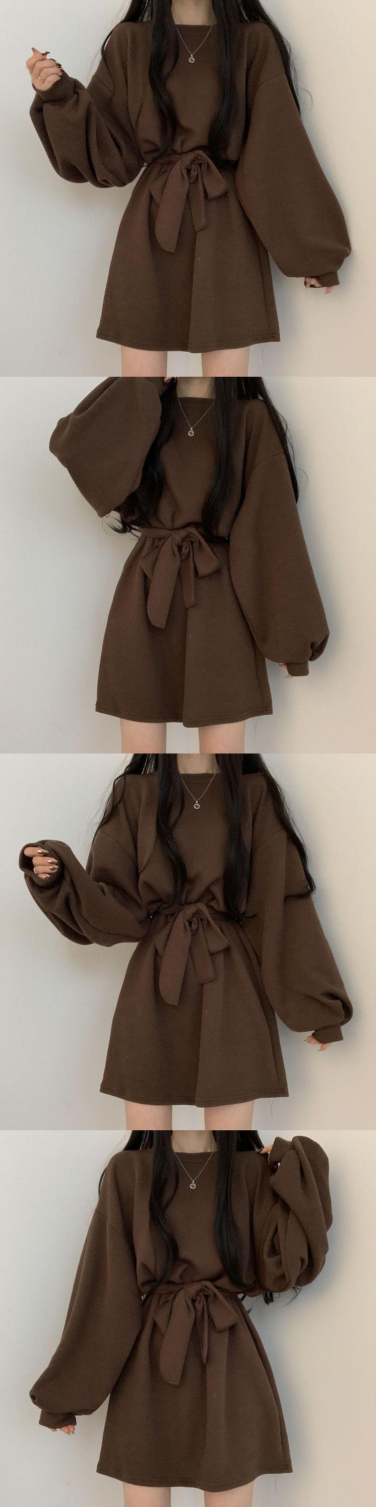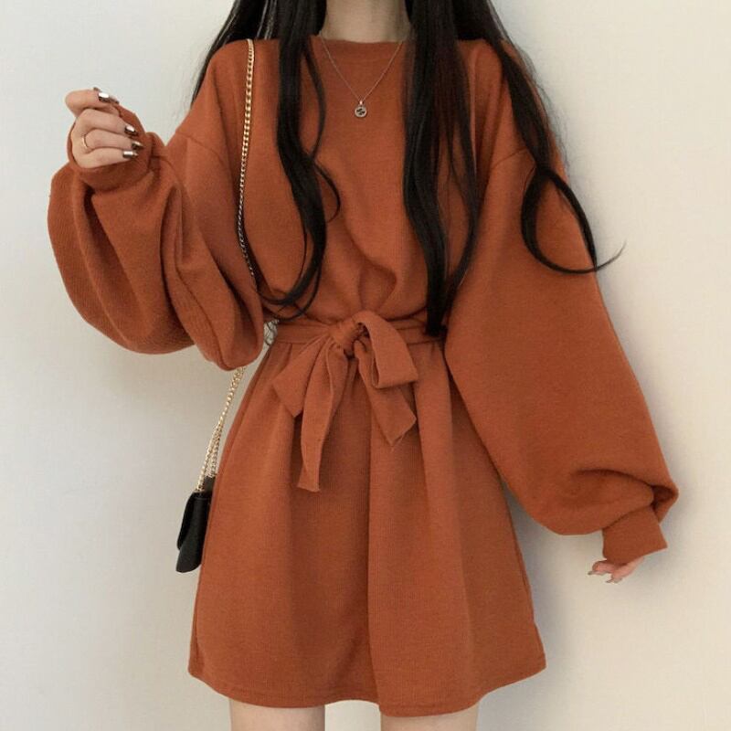 ニットドレス スプリングオータムウィンターウェストスタンダードスリーブスカート レトロ 春物 秋物 冬物 韓国婦人83062470568