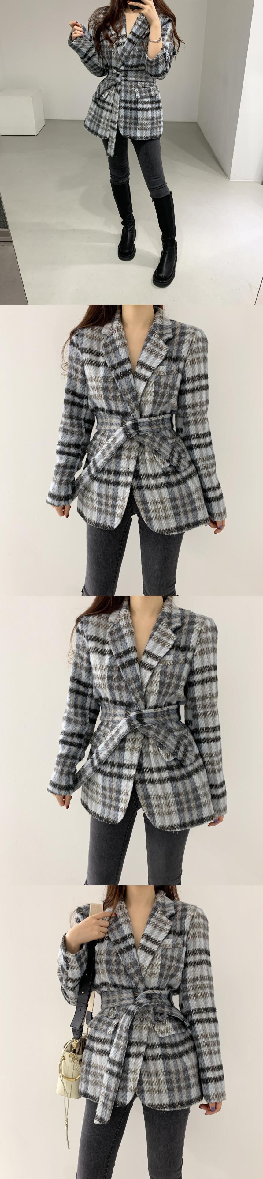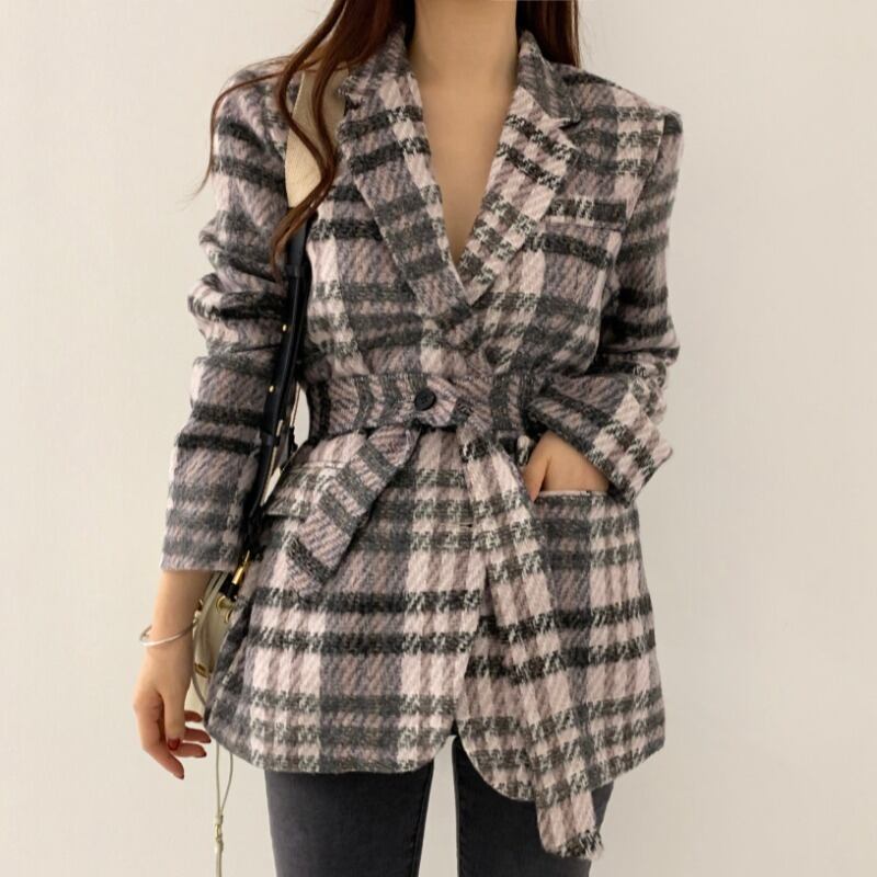 スプリングオータムスリムウェストベルト 格子柄ジャケット ロング コットン 春物 秋物 ハーネス 韓国婦人27859630251