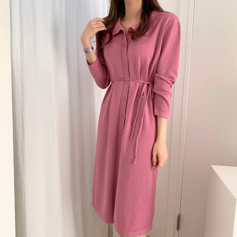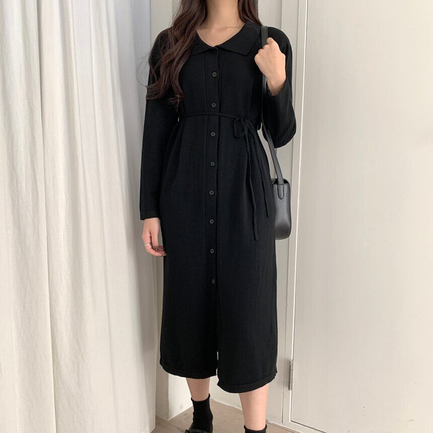 オータムウィンターニットシングルブレストロングドレス レディース 秋物 冬物 韓国婦人13248798145