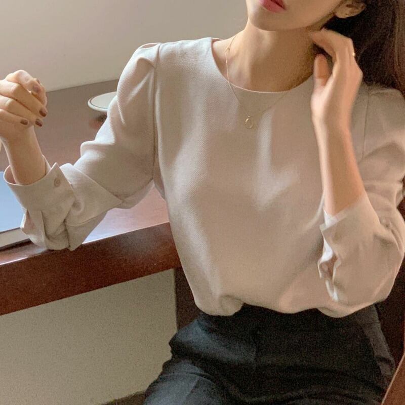 スプリングプルオーバー スリーブシャツ 薄手ソリッド カラーレディース 春物 ソリッドカラー 韓国婦人86347503801