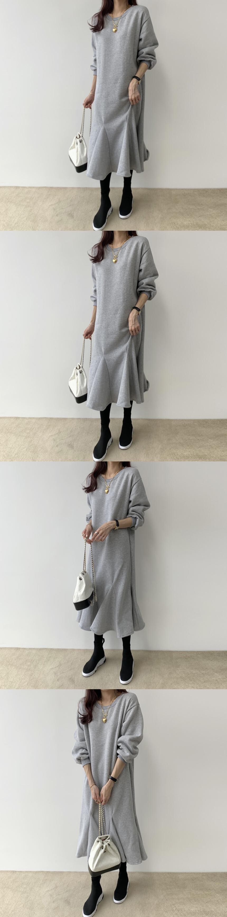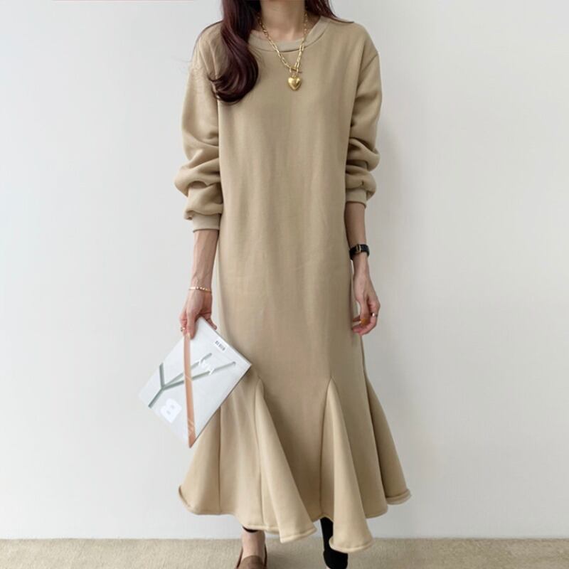 ダークブラックラウンドネックルーズカジュアルベルベットロングセーター ドレス レディース Oネック 韓国婦人68891365037