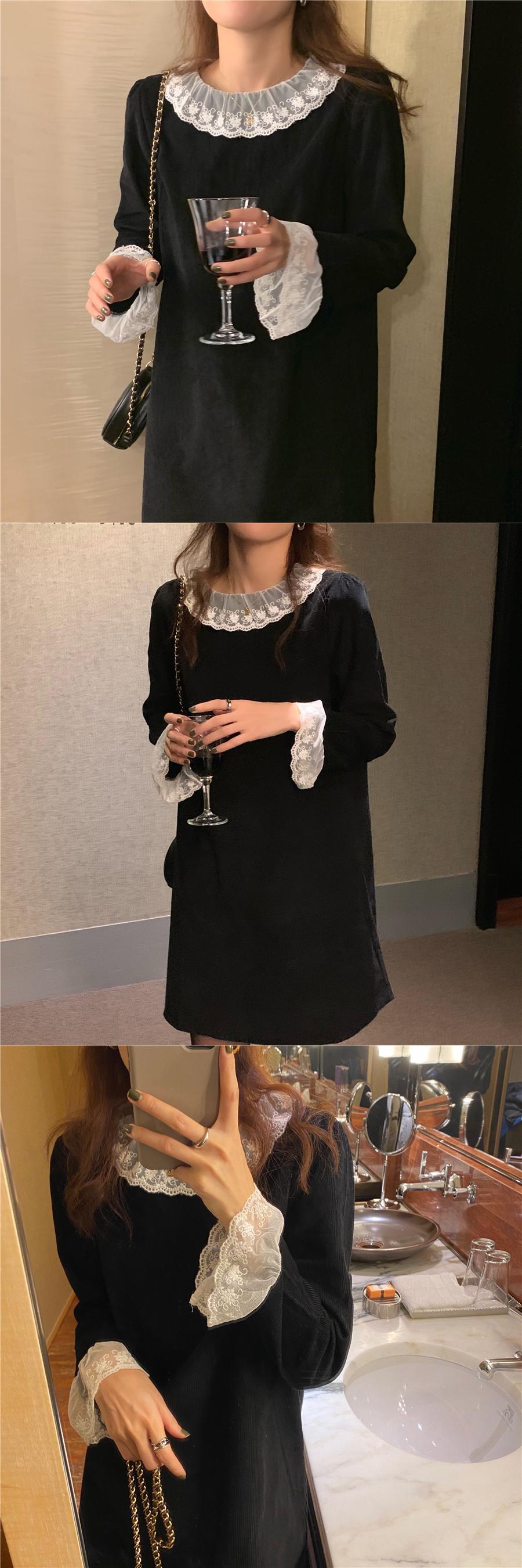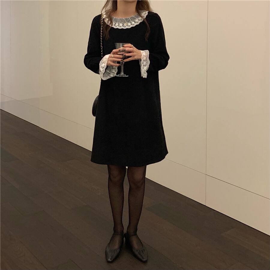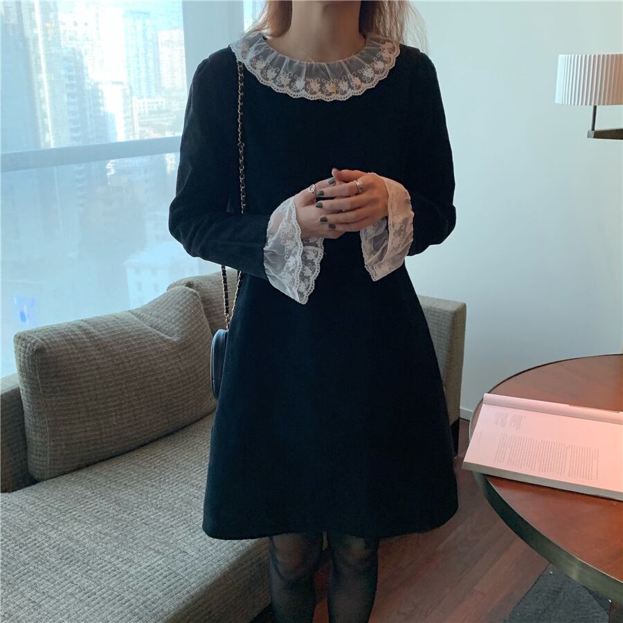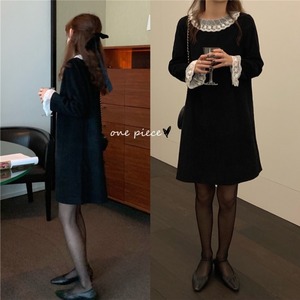 スプリングブラックドレス スタイルスリムコーデュロイレディース 春物 韓国婦人32611414187