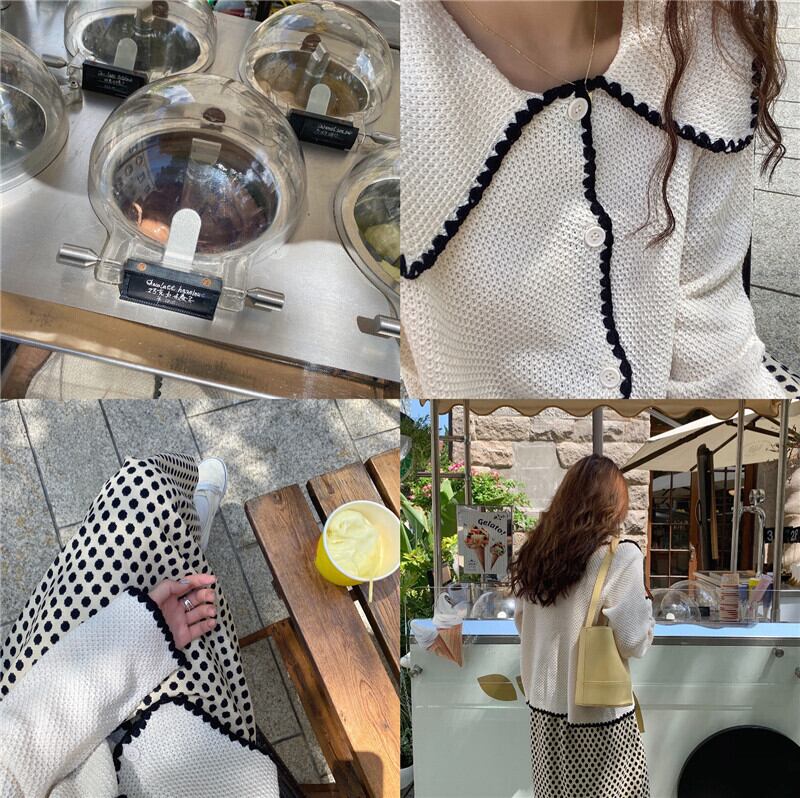 スプリングカラーカーディガンセーター ジャケット 水玉スカート 大人ガーリー スウィート キュート カジュアル 春物 韓国婦人92334926726