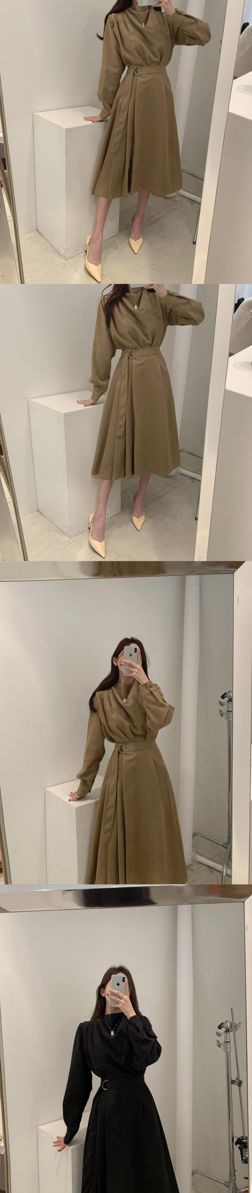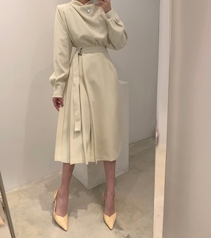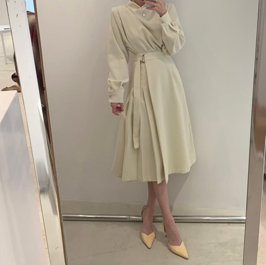 プリーツカラーシャツ ハイウェストスカート ロング 韓国婦人17191414153
