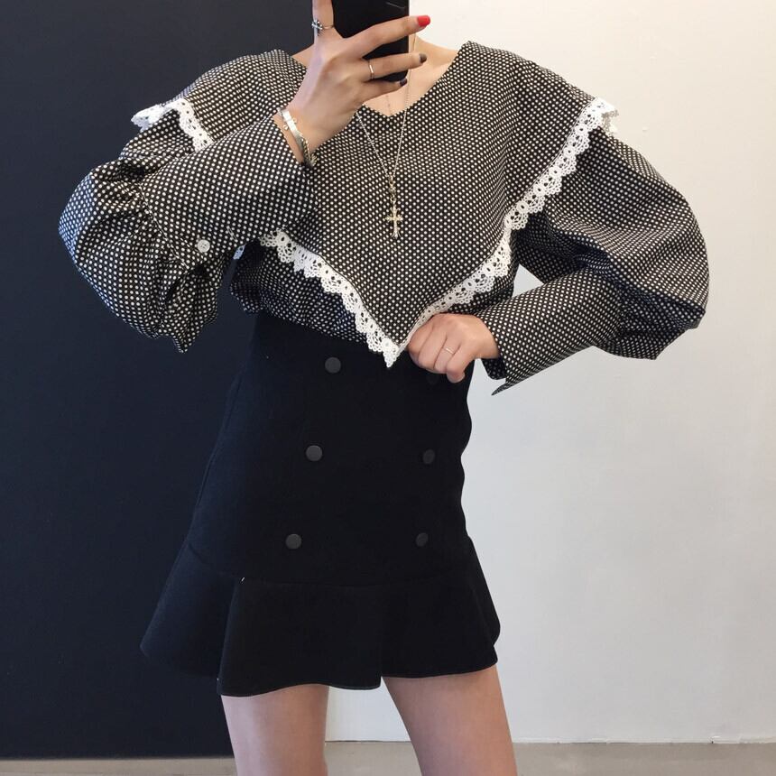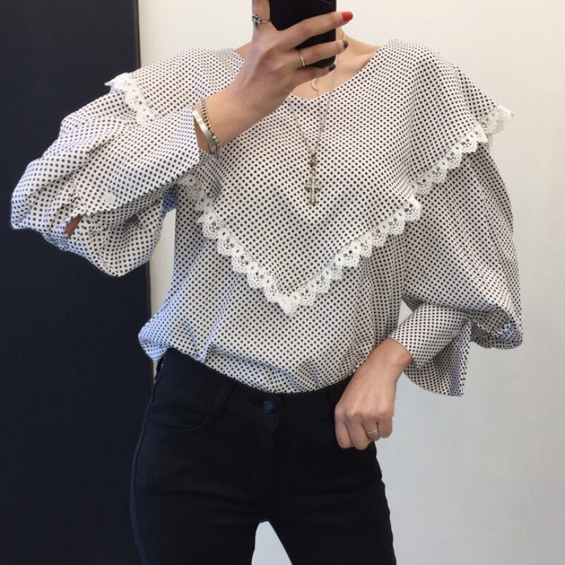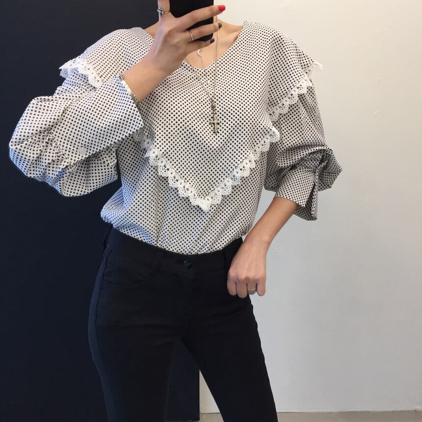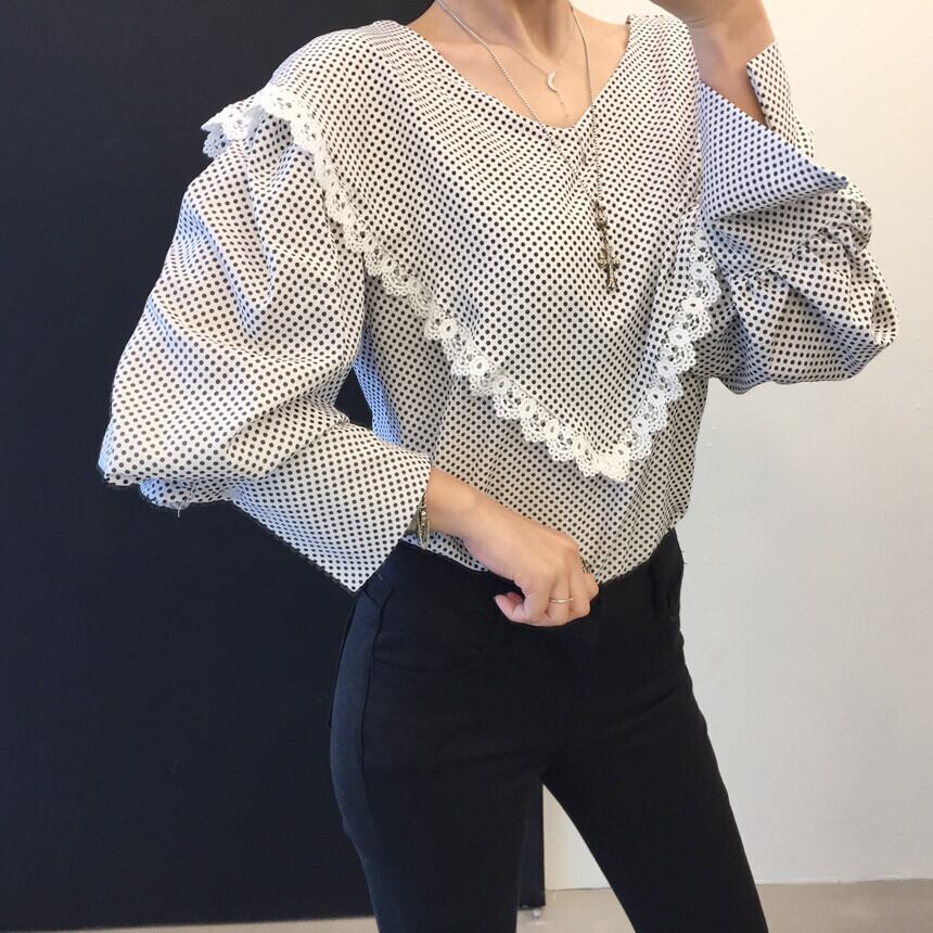 スプリングスタイルレースシャツ トップス ロング 春物 ステッチ 韓国婦人64610450901
