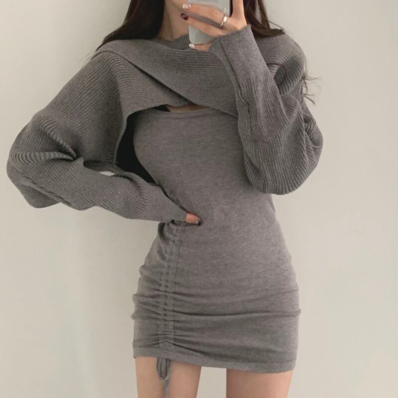 スプリングウェスト薄手ニットセーター ドレス 春物 韓国婦人52596888801