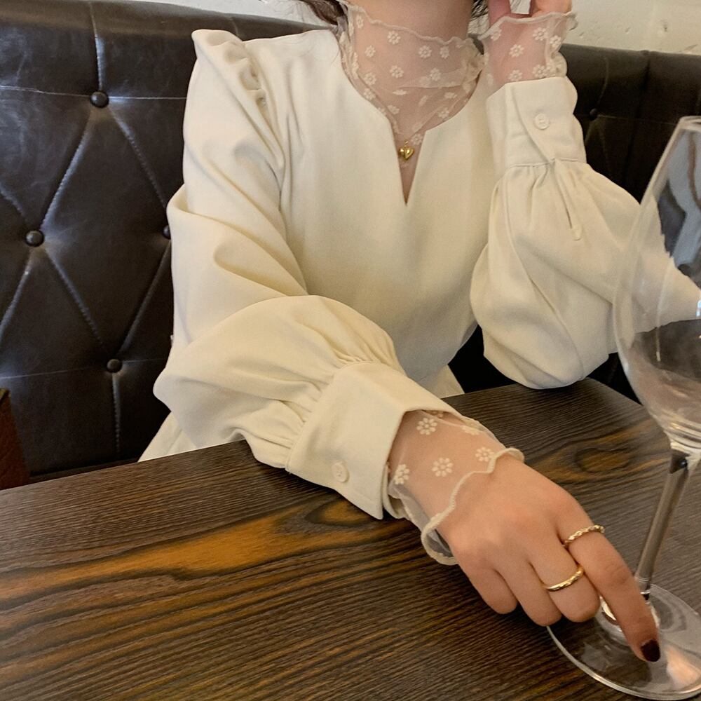 色:シースルーフラワーボトミングシャツ,ミルキーアプリコットドレス