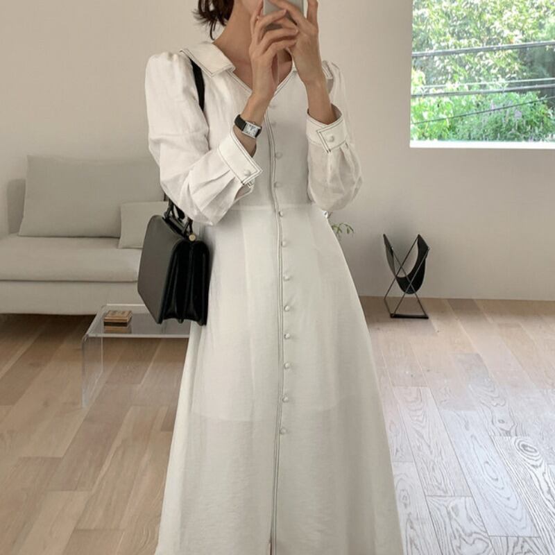 薄手ロングシャツ スカート エレガント 韓国婦人92113117755
