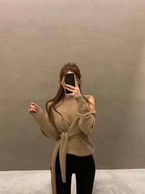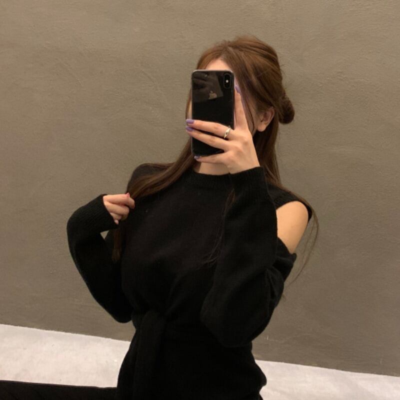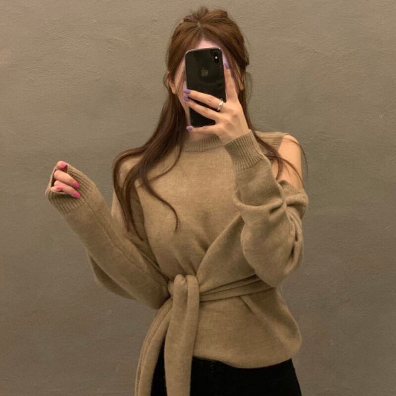 スプリングオータムスタンダードルーズプルオーバー セーター レディース レトロ 春物 秋物 オフショルダー 韓国婦人7722098947