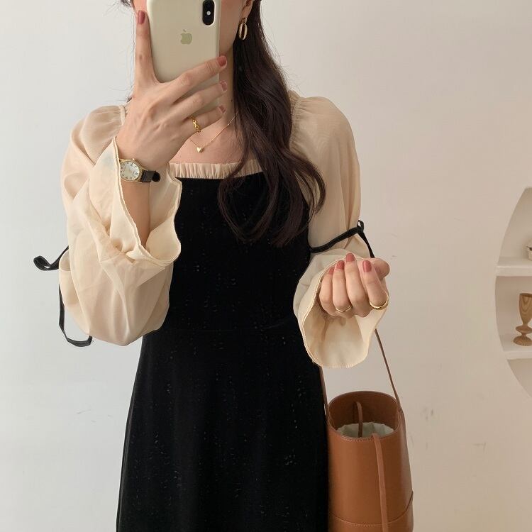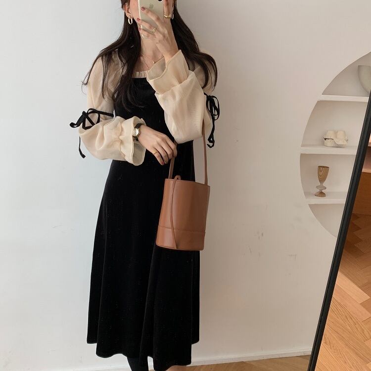 スタイルオータムウィンター薄手ベルベットドレス ストリート 秋物 冬物 韓国婦人15356673297