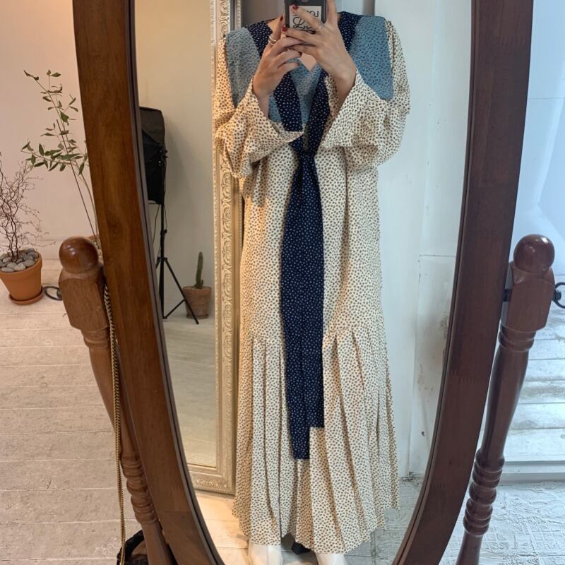 オータムスタンダードカラールーズプリーツドレス ロングスカート レトロ 秋物 韓国婦人6997742099