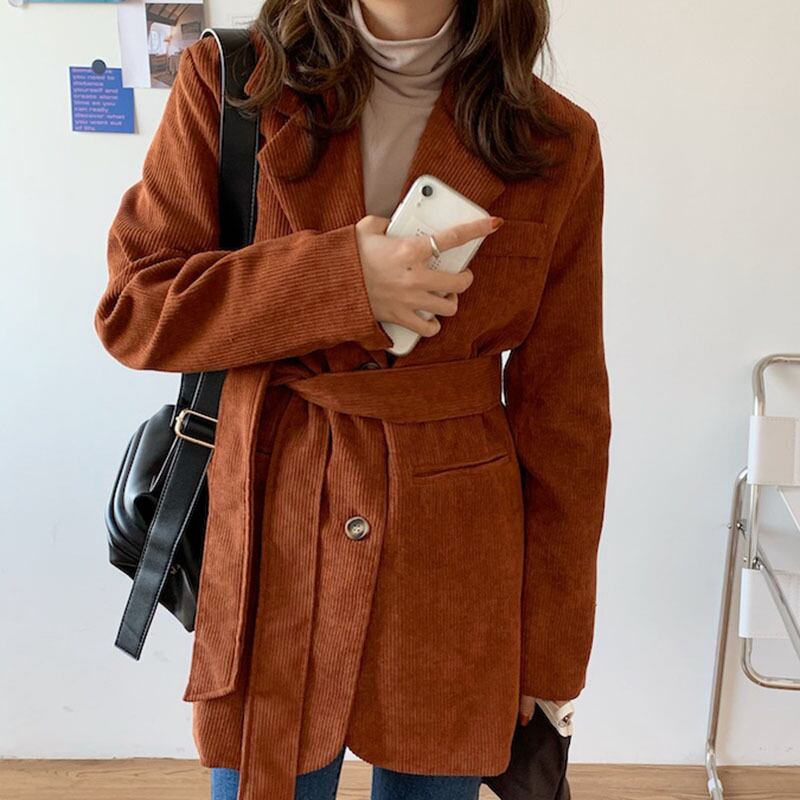 スプリングオータムルーズカジュアルスタイルコーデュロイジャケット レディース ストリート 春物 秋物 韓国婦人93931694426