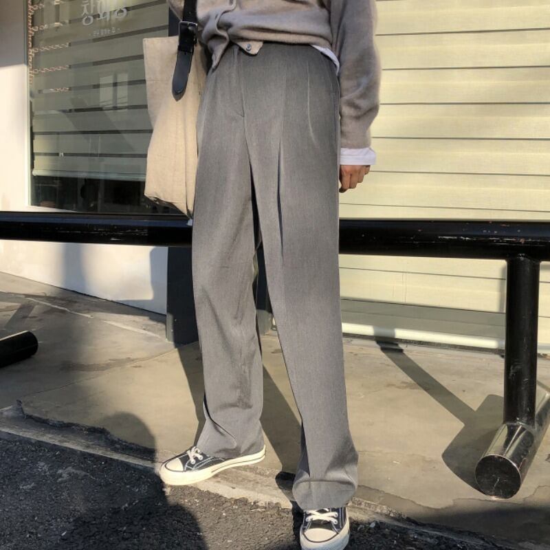 スプリングオータムカジュアルパンツ ハイウェストグレールーズ 春物 秋物 韓国婦人60302944328
