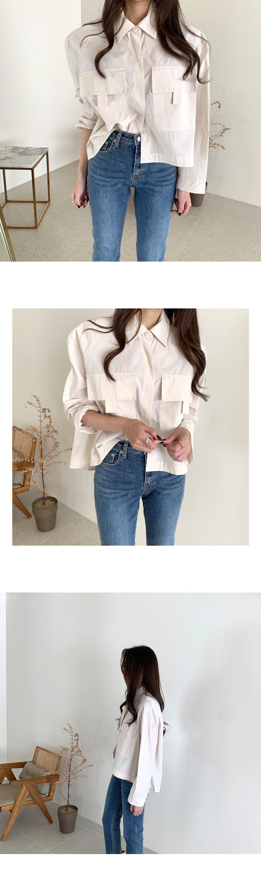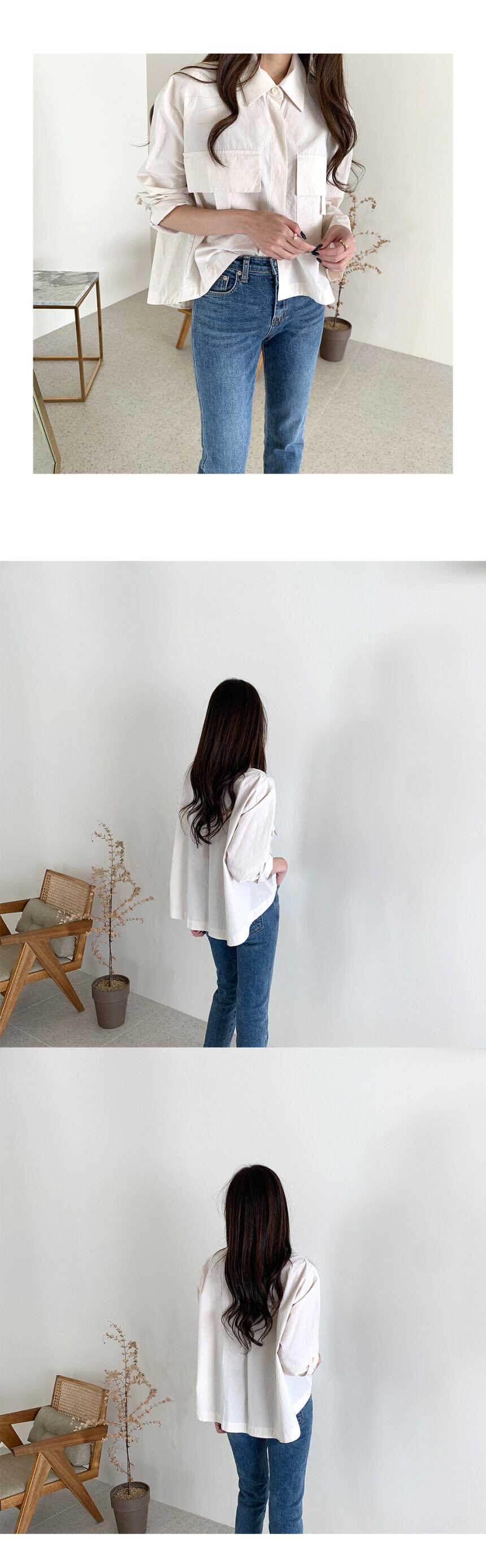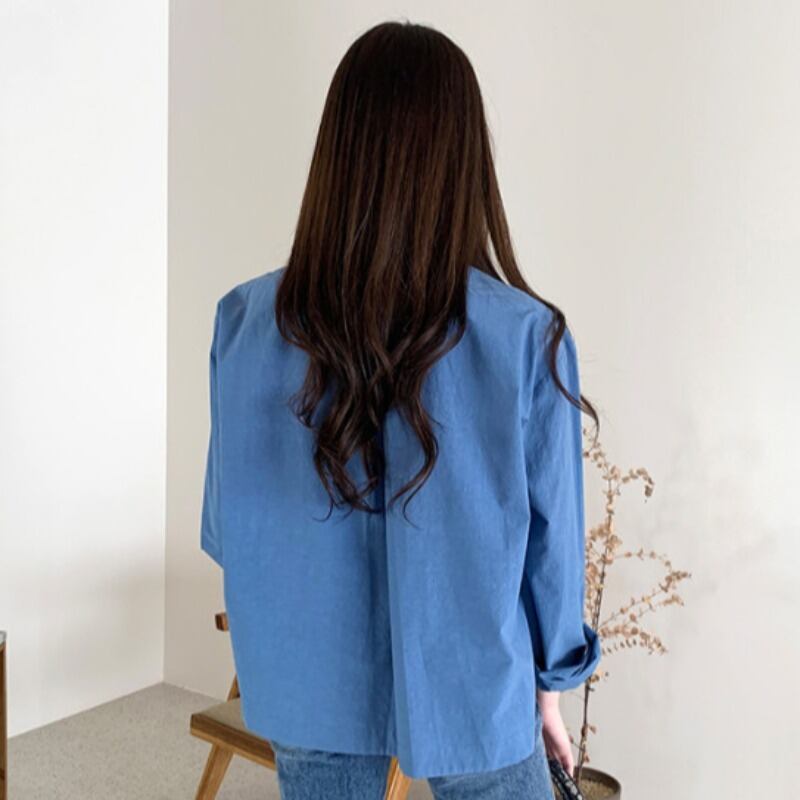 スプリングオータムスタイルスタンダードポケットブラウス ルーズシャツ レディース ロング レトロ 春物 秋物 韓国婦人85931124808