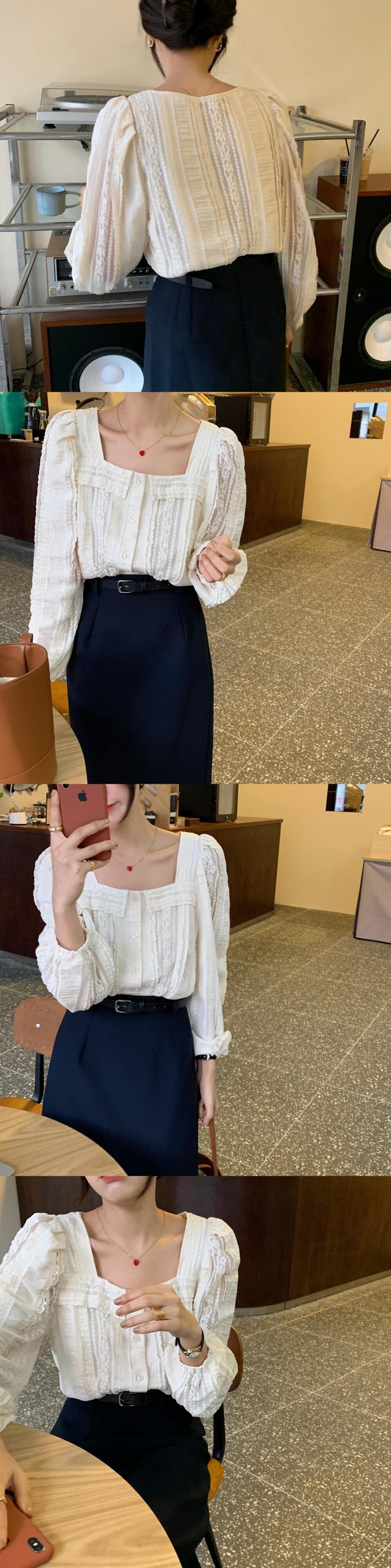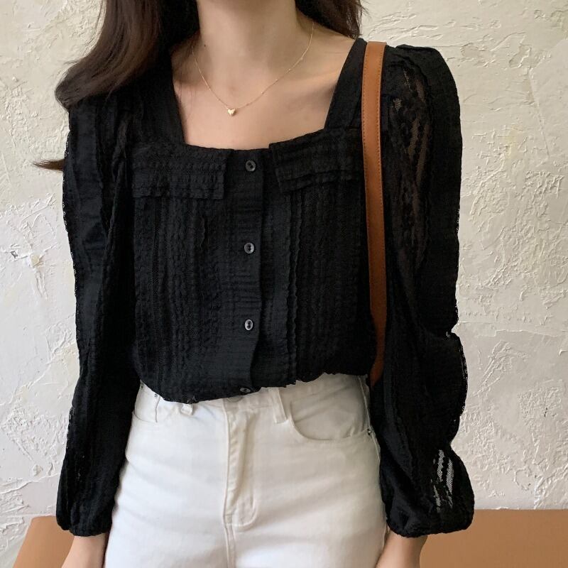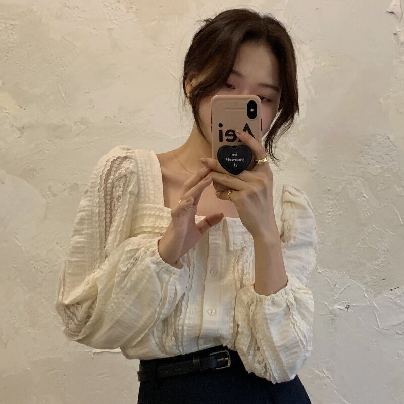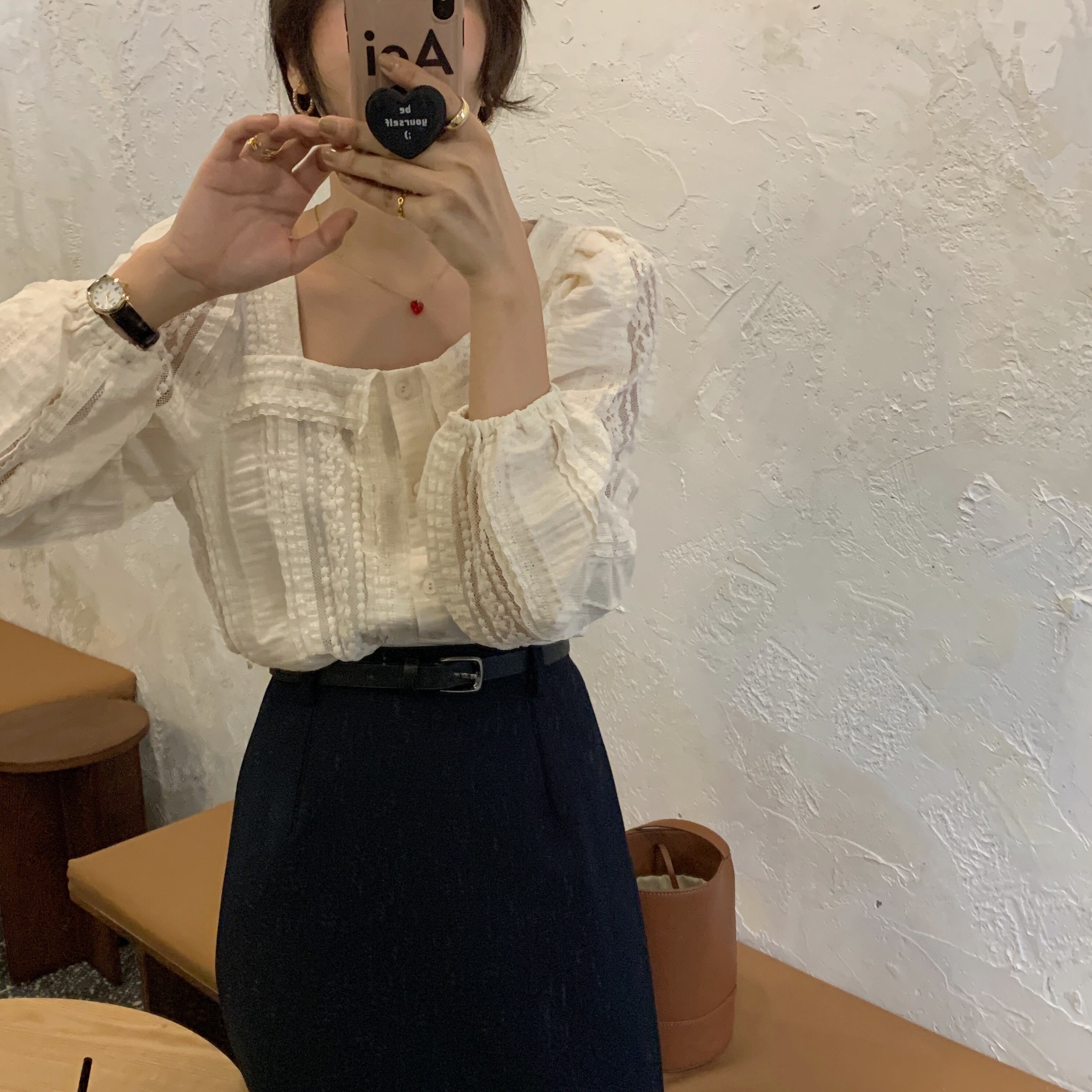 スプリングオータムレースブラウス Flowerデザイン シャツ ロング 春物 秋物 フラワーデザイン スクウェア 韓国婦人68167413073