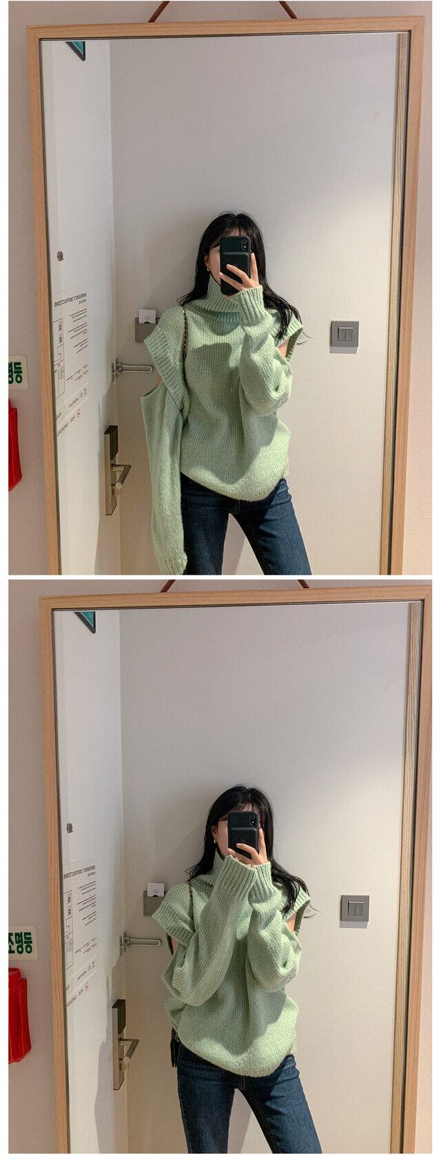 ルーズストラップレスセーター レディースオータムウィンターグリーン 秋物 冬物 韓国婦人67977498242