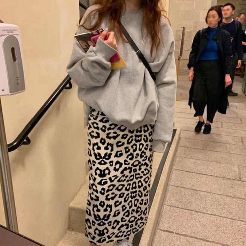 スプリングオータムスタイルソリッド カラーベルベットセーター レオパードスカート 春物 秋物 ソリッドカラー 韓国婦人80450371965