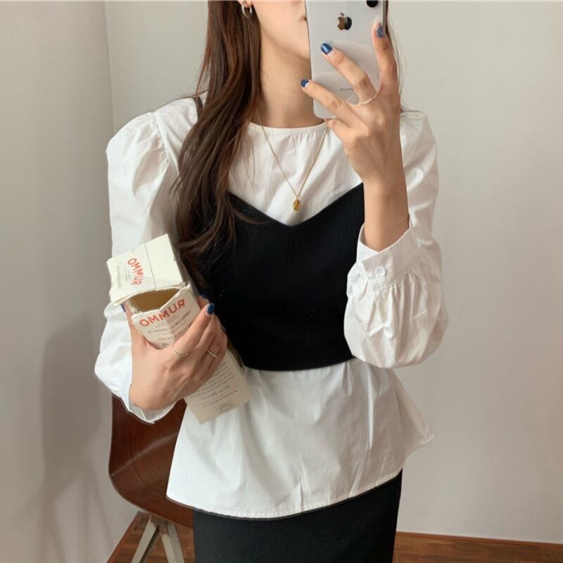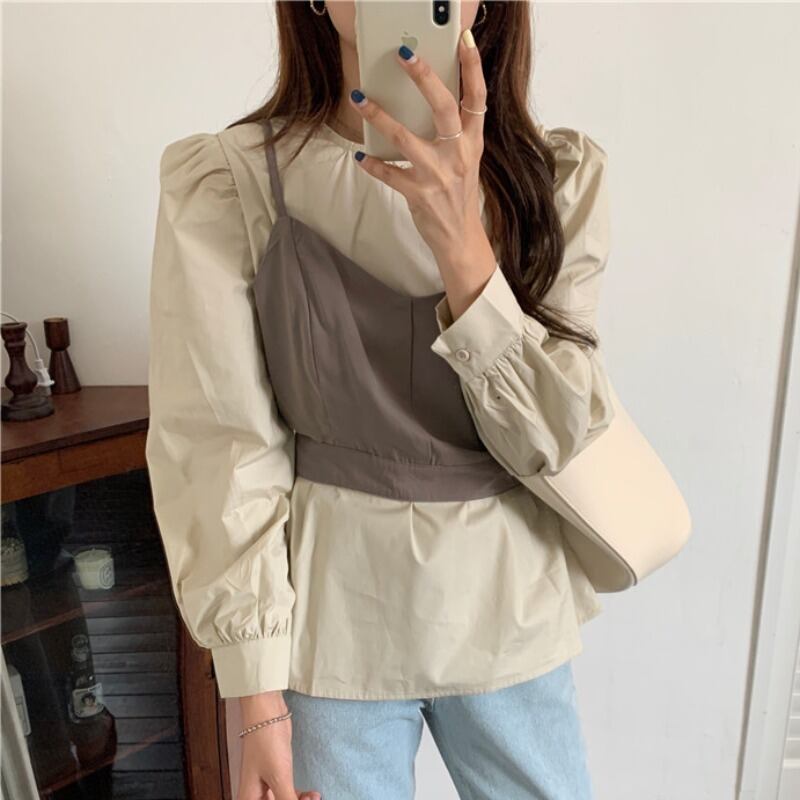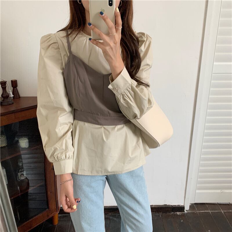 スプリングスタンダードスリーブブラウス ルーズ薄手長袖シャツ ロング ランタンスリーブ レトロ 春物 韓国婦人97277998216