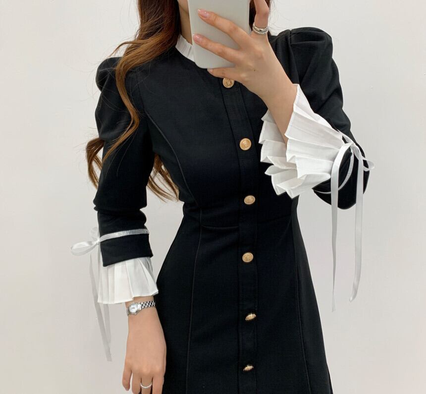 スプリングスタンダードスタイルウェストスリムドレス レトロ 大人ガーリー スウィート キュート カジュアル 春物 韓国婦人51578017783