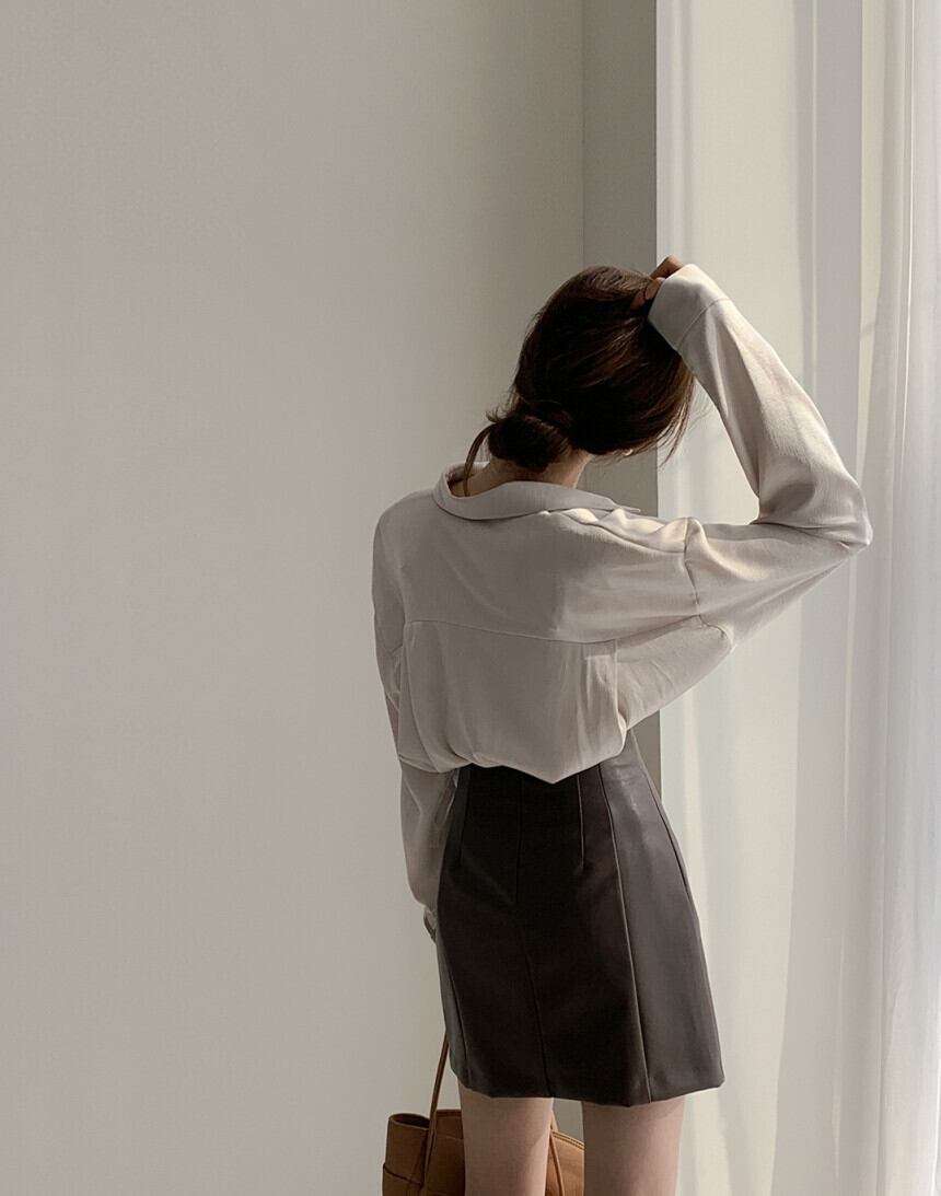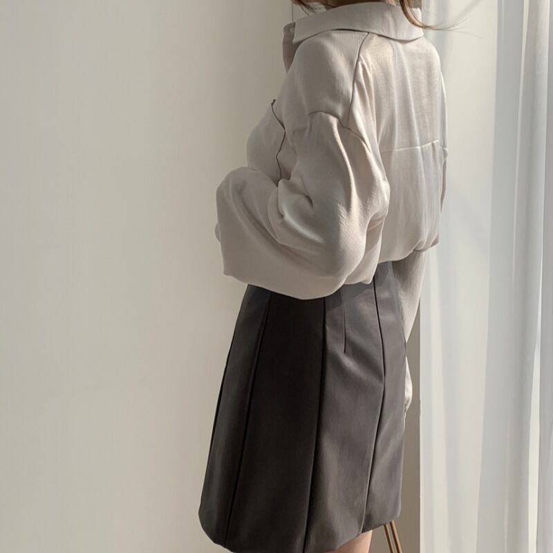 スプリングオータムスタンダードシャツ ハイウェストウェストスカート レザーAライン ロング レトロ 春物 秋物 韓国婦人88499818276