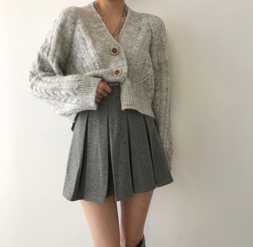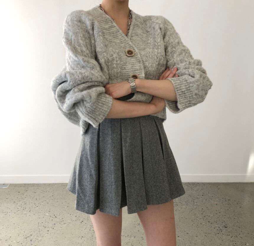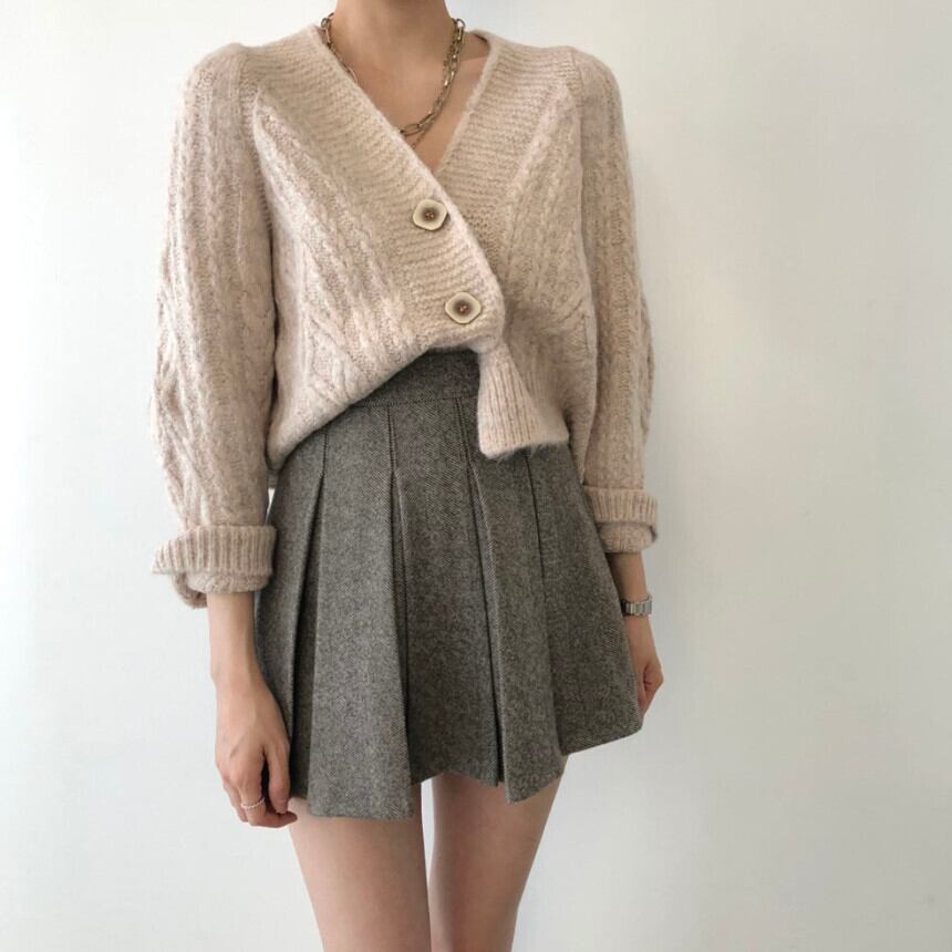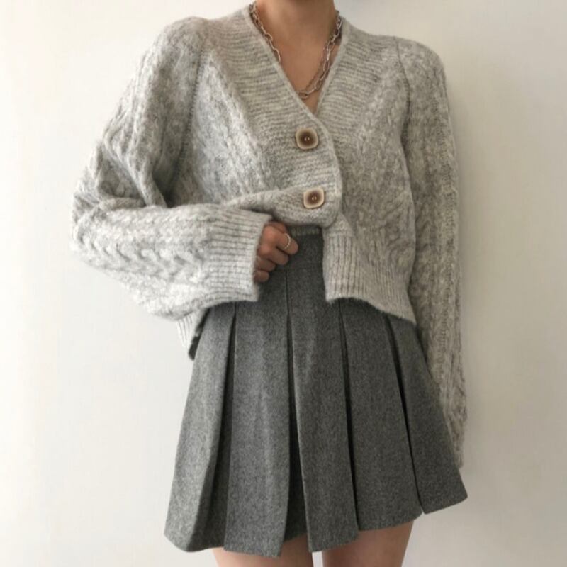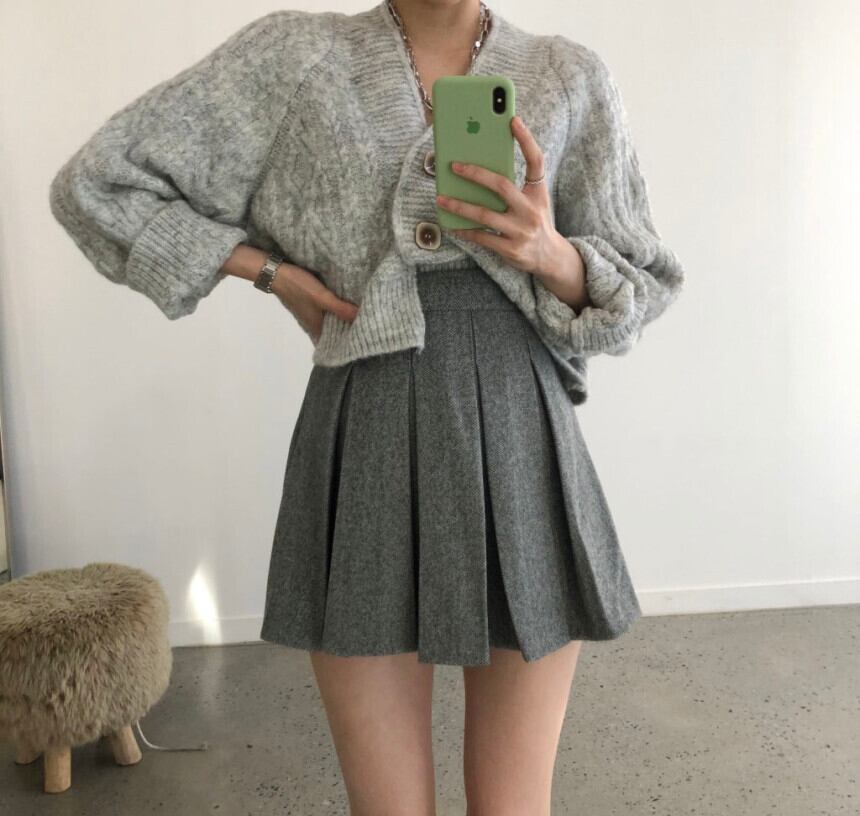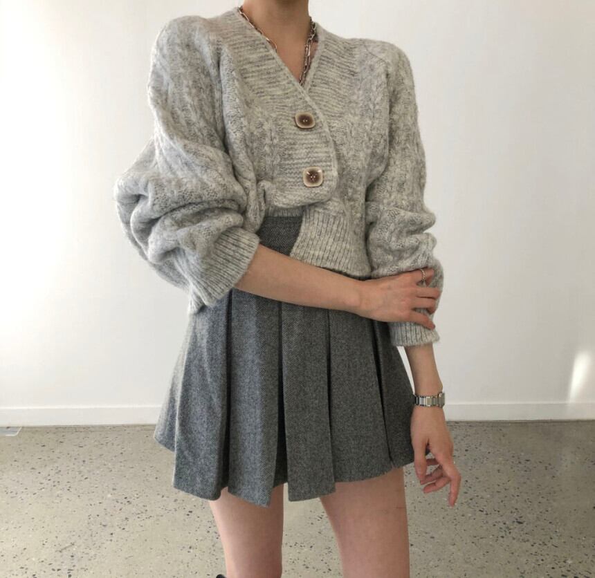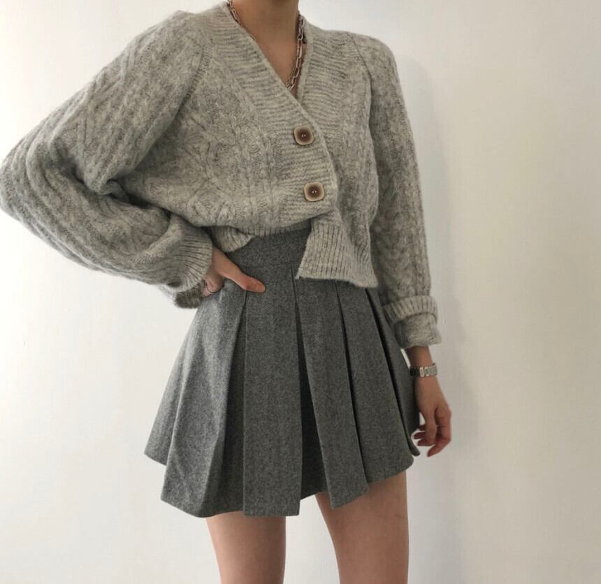 オータムウィンタースタンダードカーディガンセーター プリーツハイウェストウェストスカート レトロ 秋物 冬物 韓国婦人82809074395