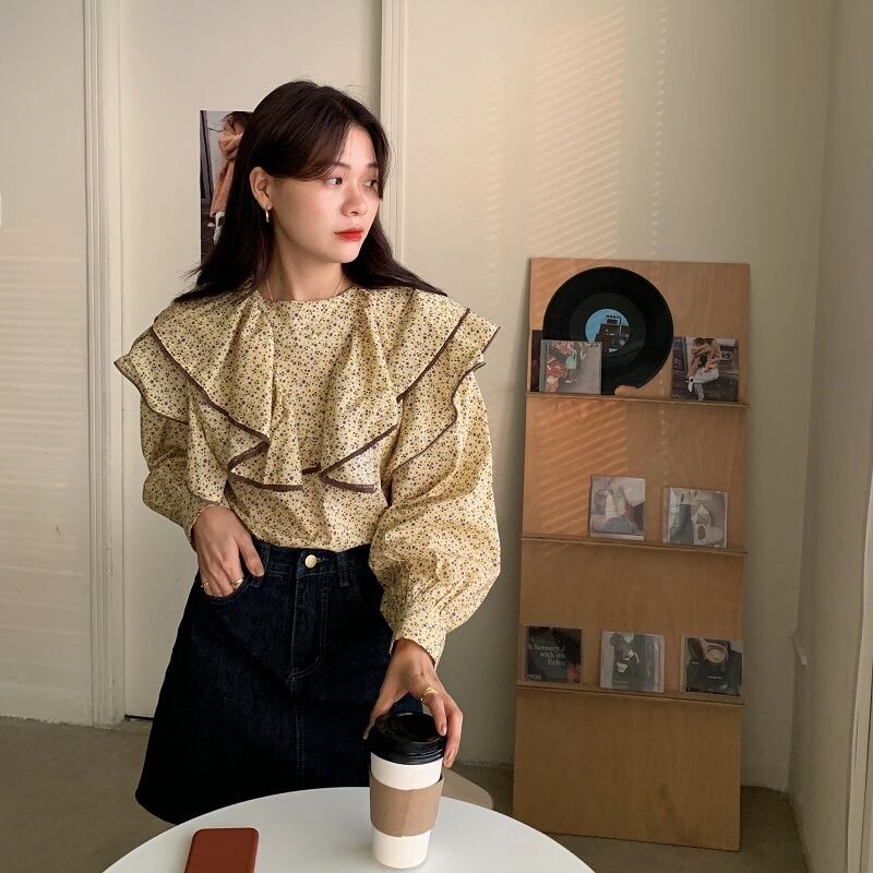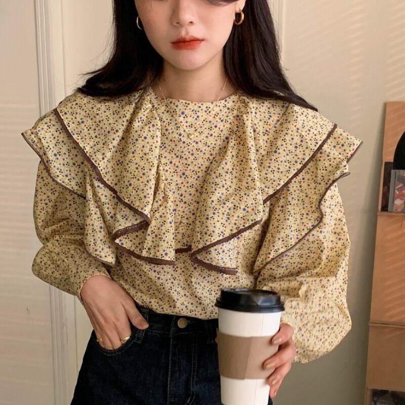 スプリングオータムフローラルブラウス 薄手シャツ ロング 春物 秋物 花柄 韓国婦人48514809482