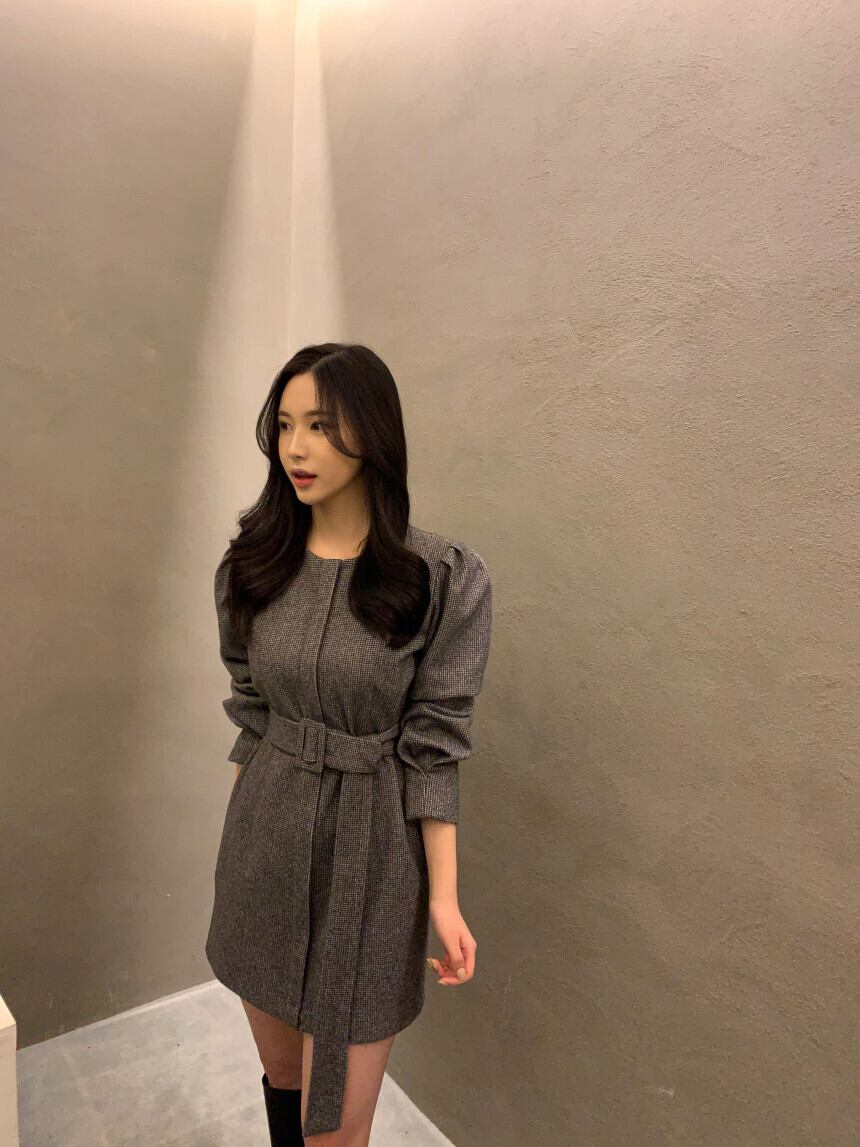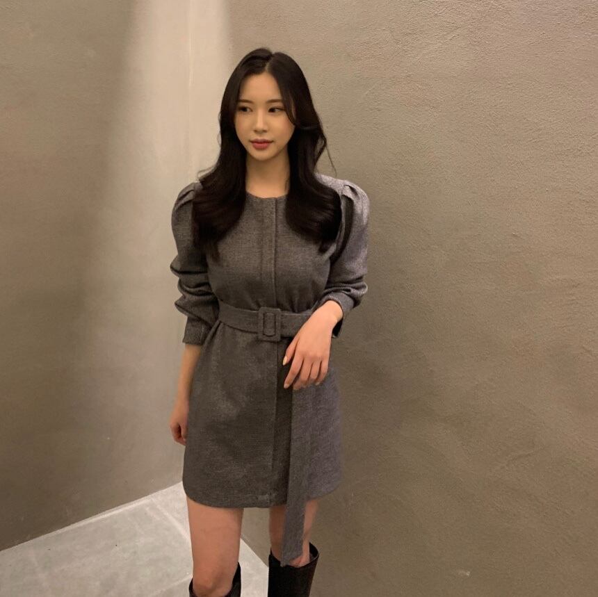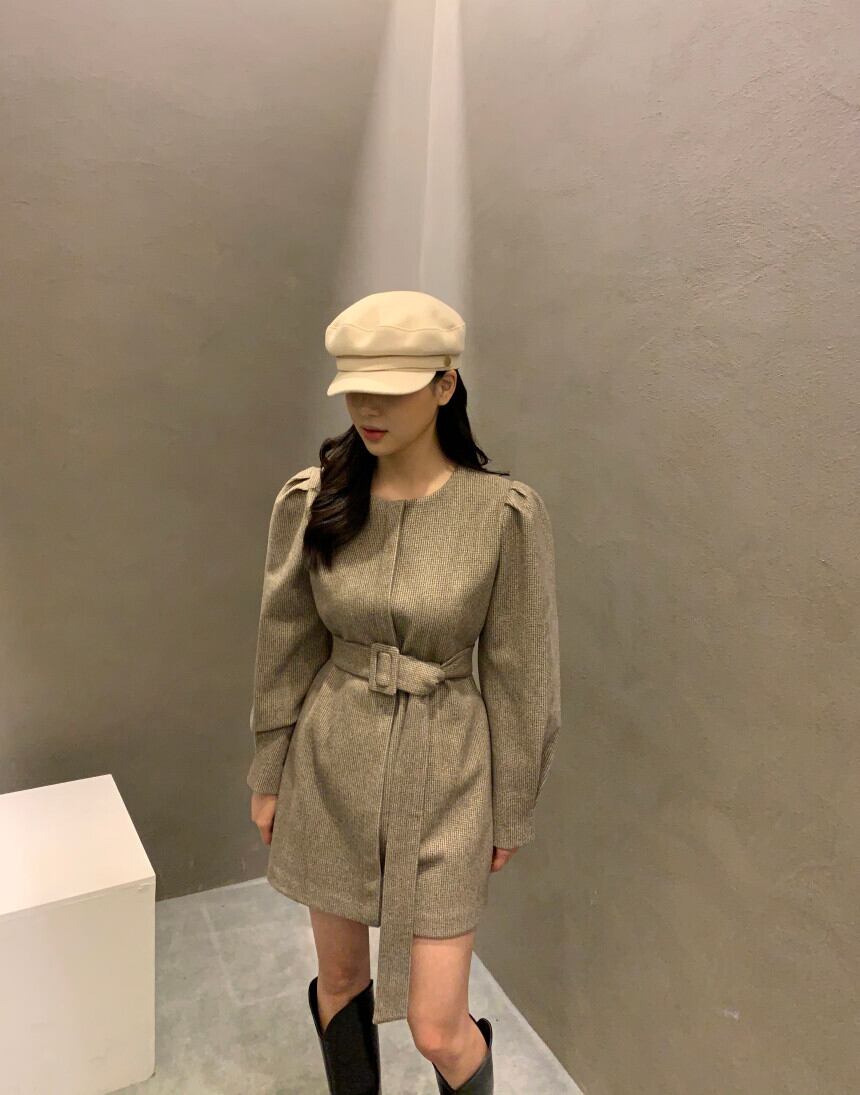 スプリングオータムラウンドネックスタイルスリーブレース薄手ウェストショートドレス 春物 秋物 Oネック レースアップ 韓国婦人40541660796