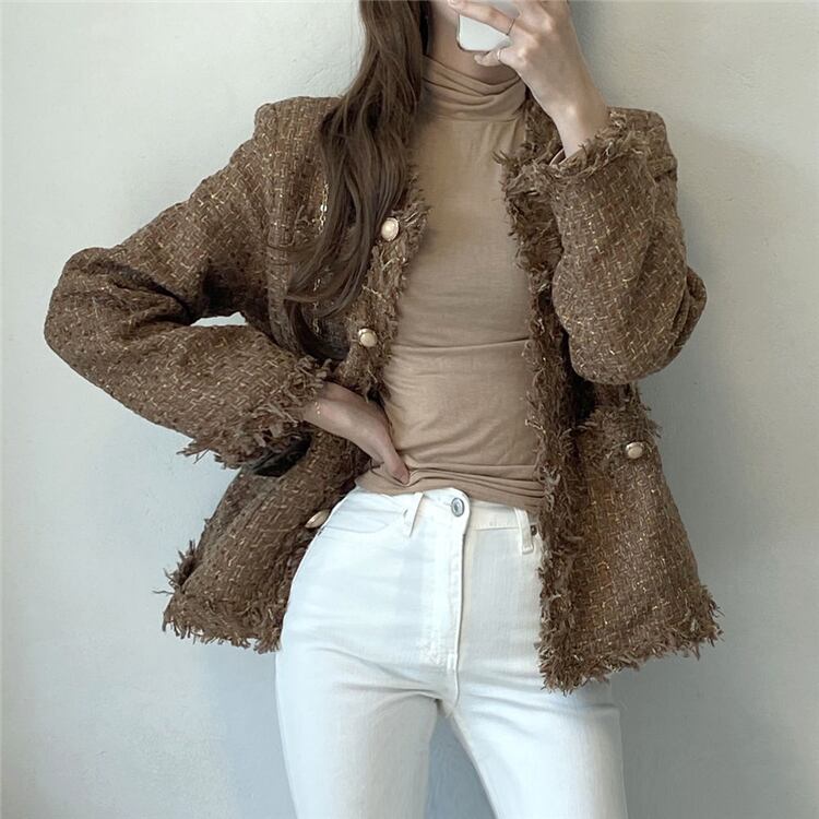 オータムウィンタースタイルルーズツィードジャケット ロング 秋物 冬物 韓国婦人76444923698