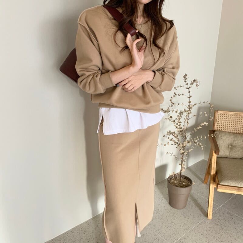 スプリングルーズセーター ハイウェストウェストスカート レディース 春物 韓国婦人12467338044