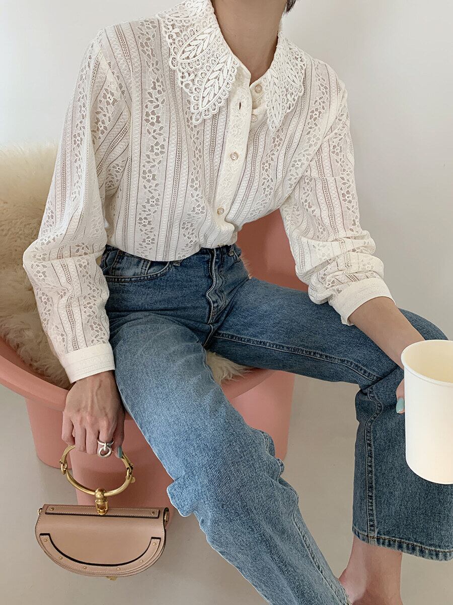 レディーススプリングオータムレースシャツ セーター レッド ロング 春物 秋物 韓国婦人10510293661