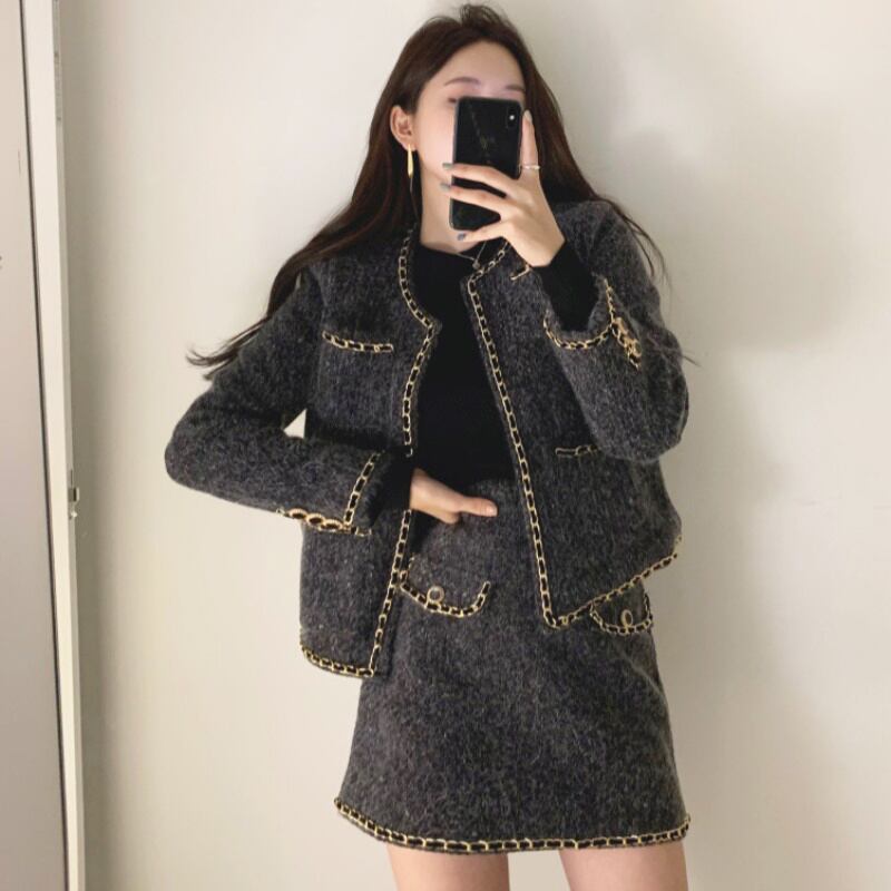 ツィードレディースオータムウィンタースリムスカート ジャケット 秋物 冬物 韓国婦人38094691283