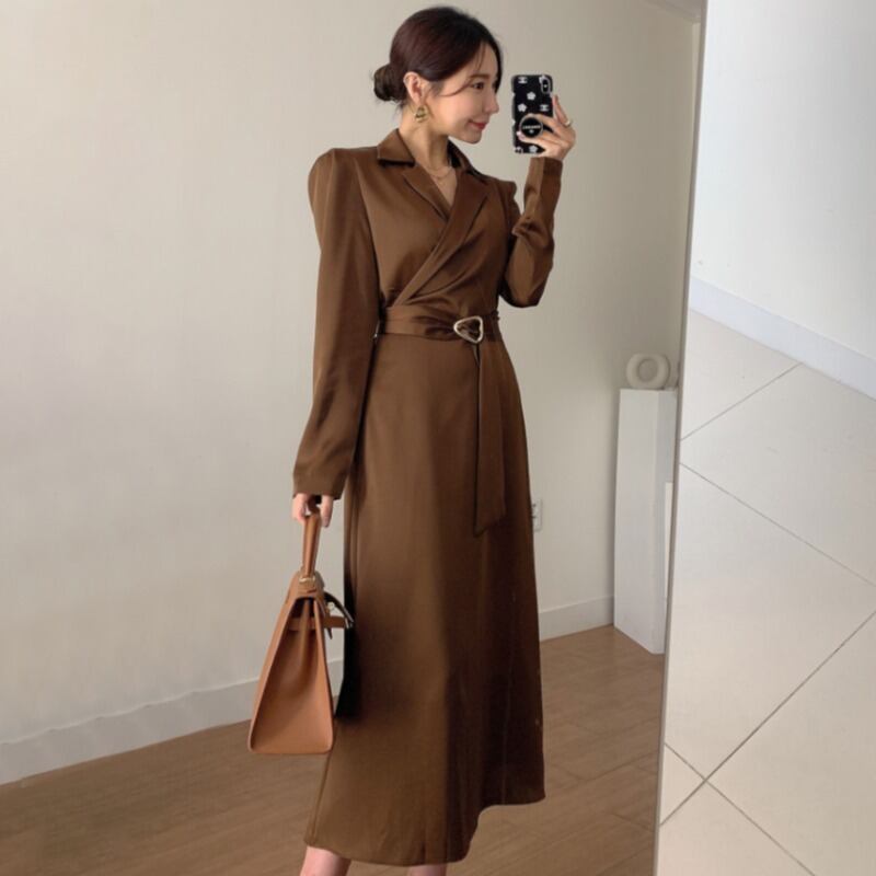 オータムウィンタークロスウェストドレス ロングスカート レディース 秋物 冬物 韓国婦人62565909491