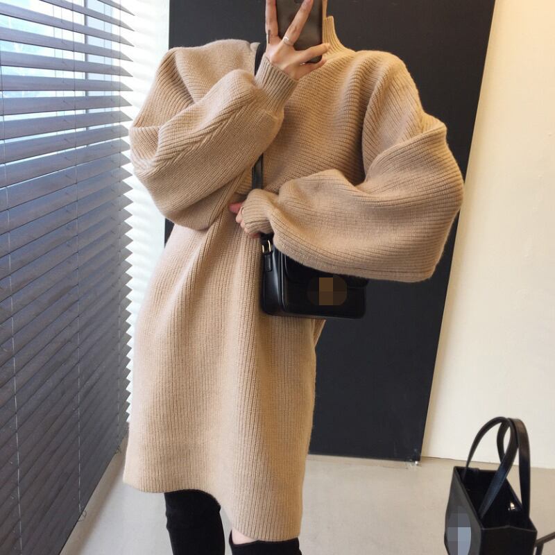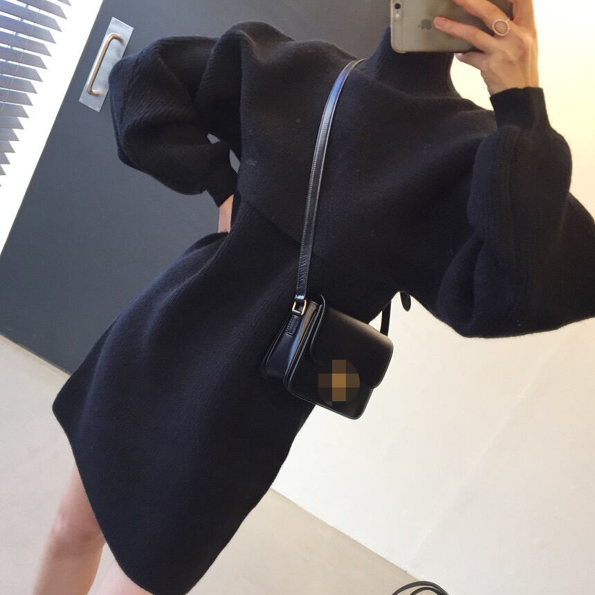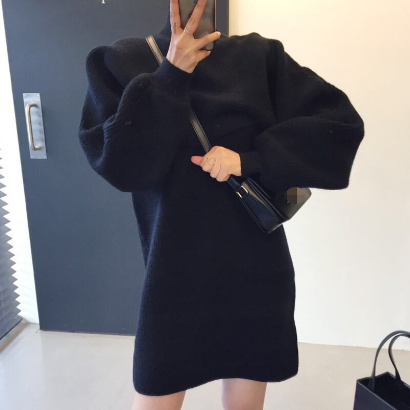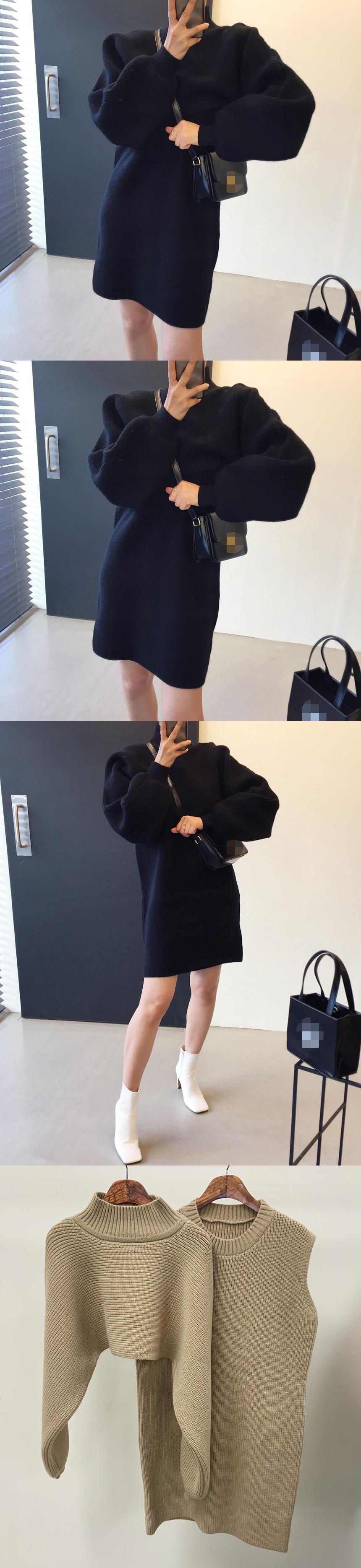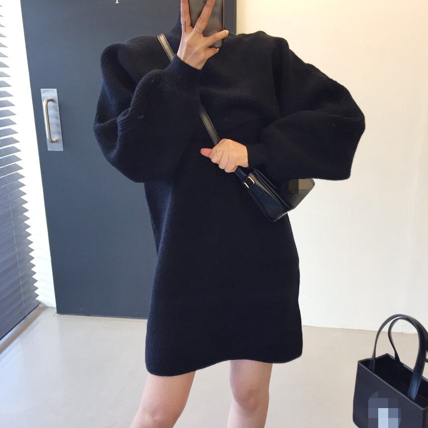 スプリングストライプスリーブセーター ニットドレス ショートスカート ランタンスリーブ 春物 韓国婦人93821079274