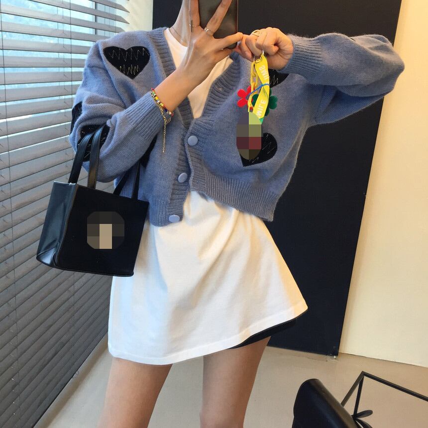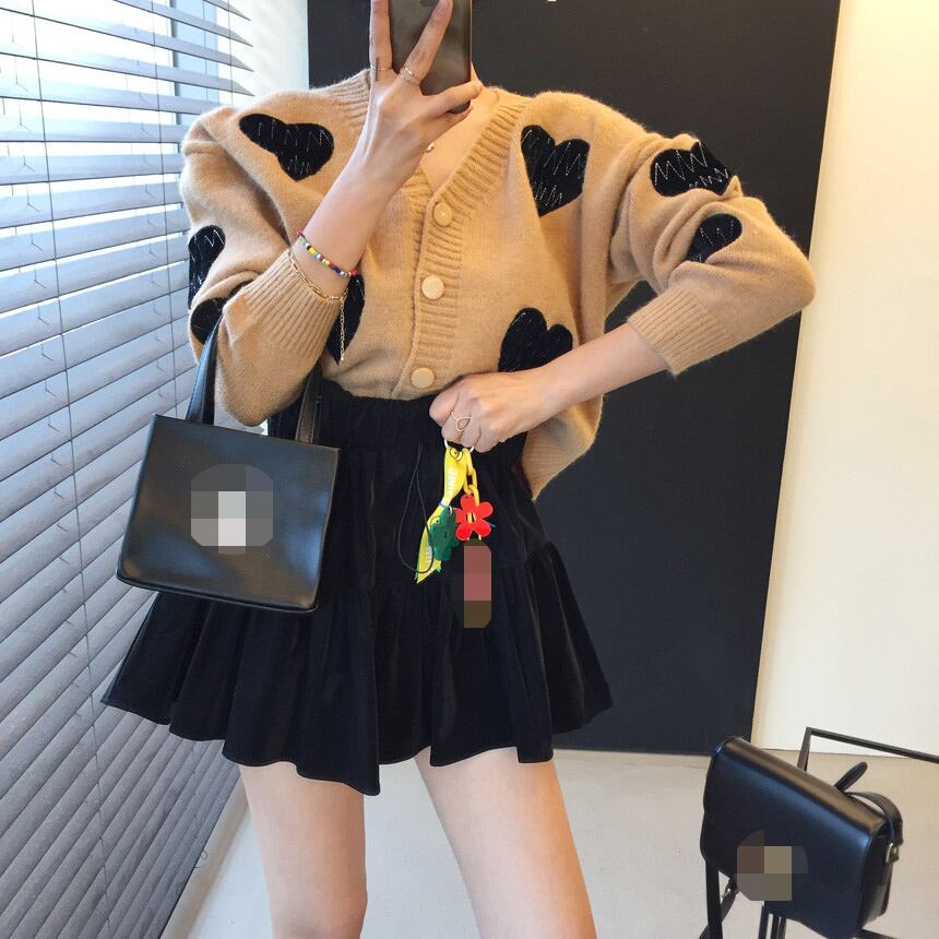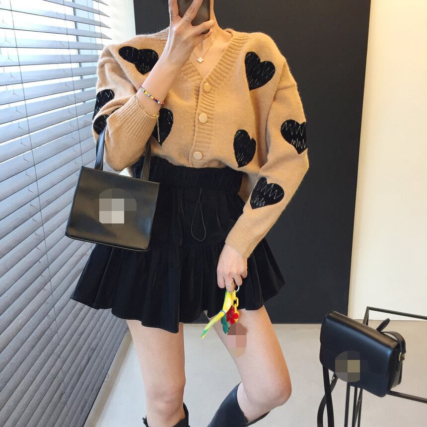 オータムウィンター刺繍ニットカーディガンセーター ハイウェストウェストスカート ふわふわ 秋物 冬物 韓国婦人87291666299
