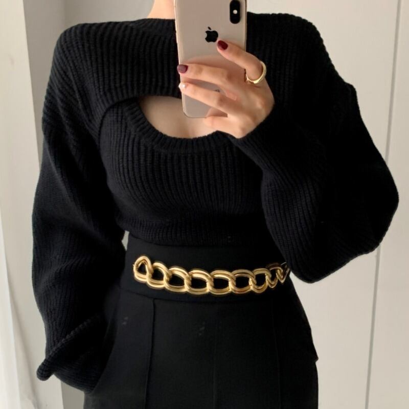 スプリングストライプセーター ショートルーズニットブラウス 春物 韓国婦人1521028759