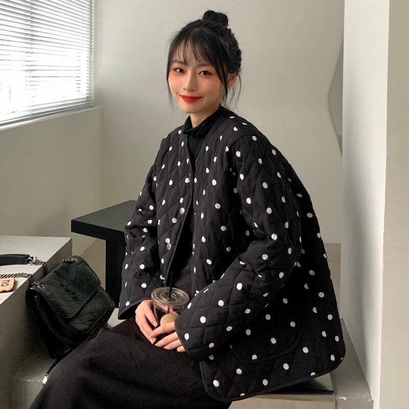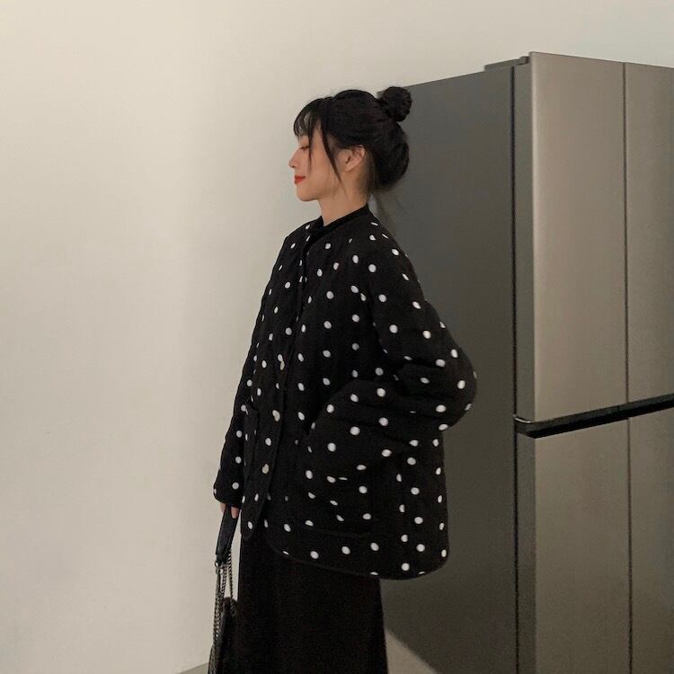 オータムスタイルスタンダード水玉ジャケット コットン レトロ 大人ガーリー スウィート キュート カジュアル 秋物 韓国婦人81450629635