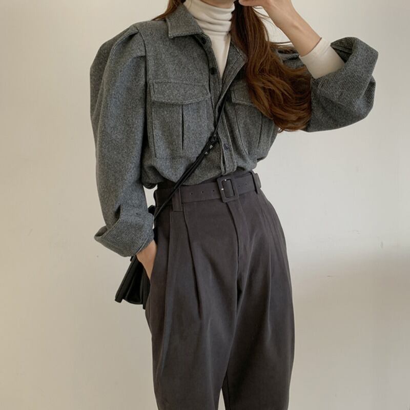 スプリングオータムルーズシャツ カジュアルパンツ ベルト 春物 秋物 ハーネス 韓国婦人63546933353