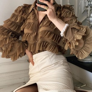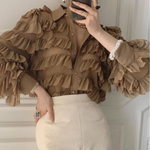スタンダードルーズシャツ スカート ランタンスリーブ レトロ ステッチ 韓国婦人36812320522