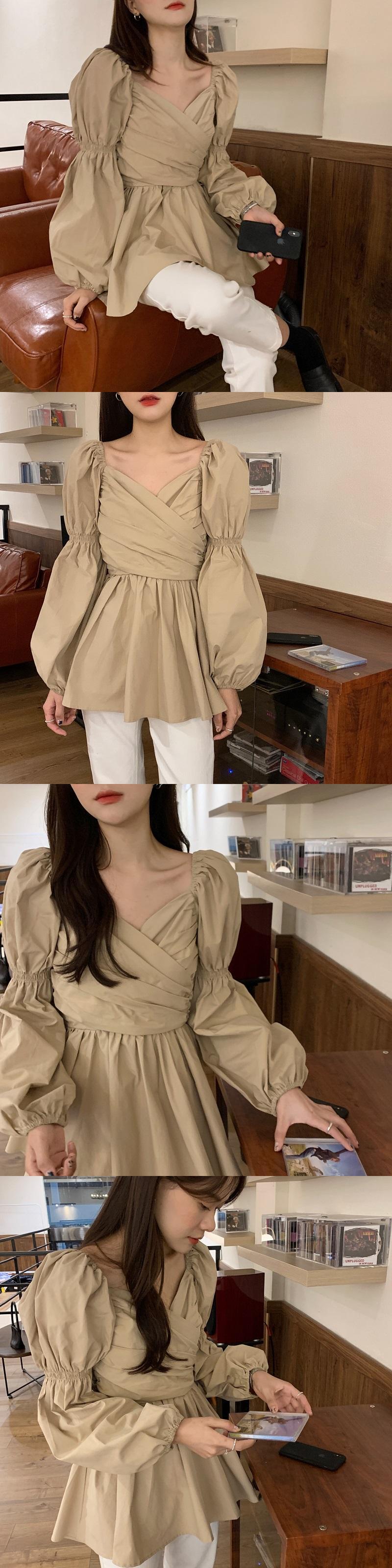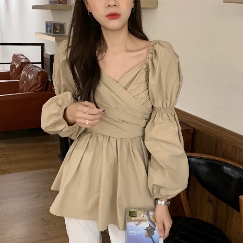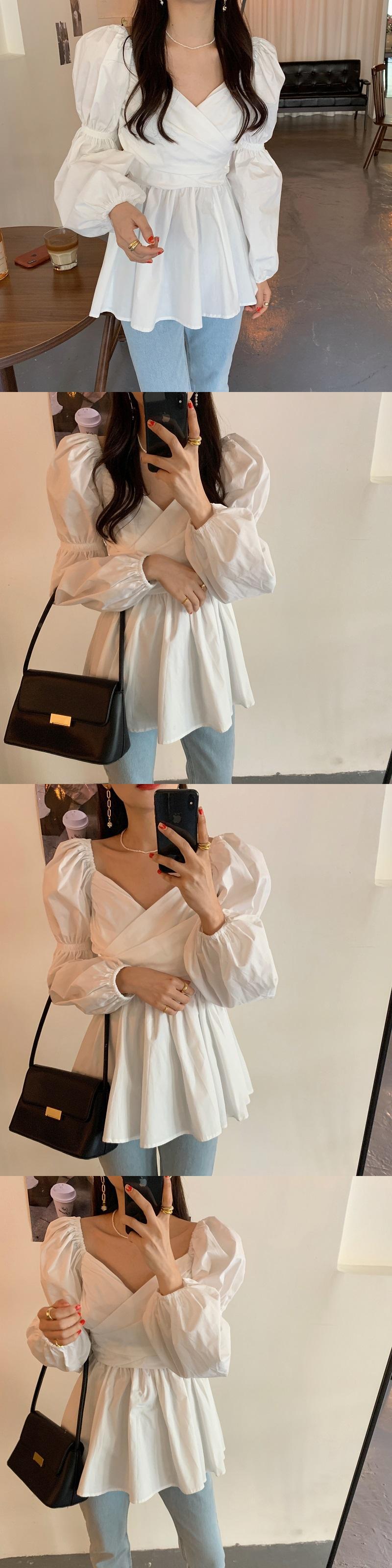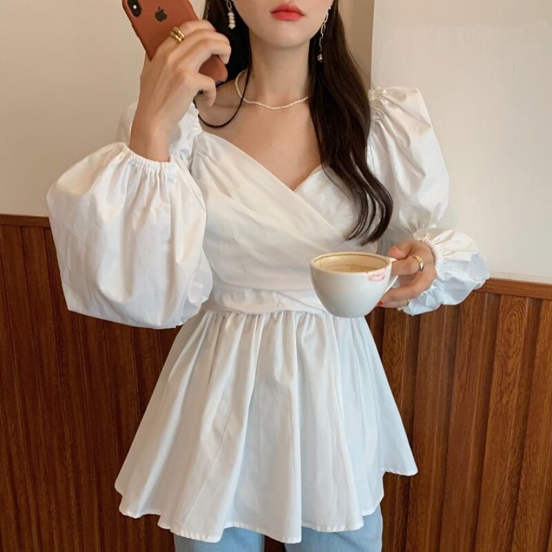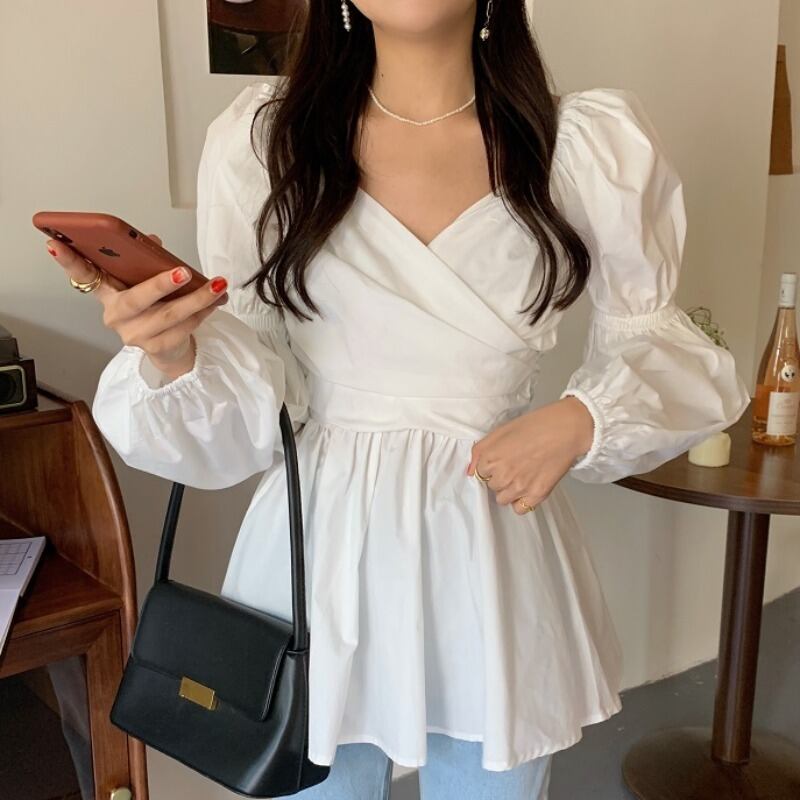 ホワイトVネックシャツ 薄手ウェスト 韓国婦人83319349027
