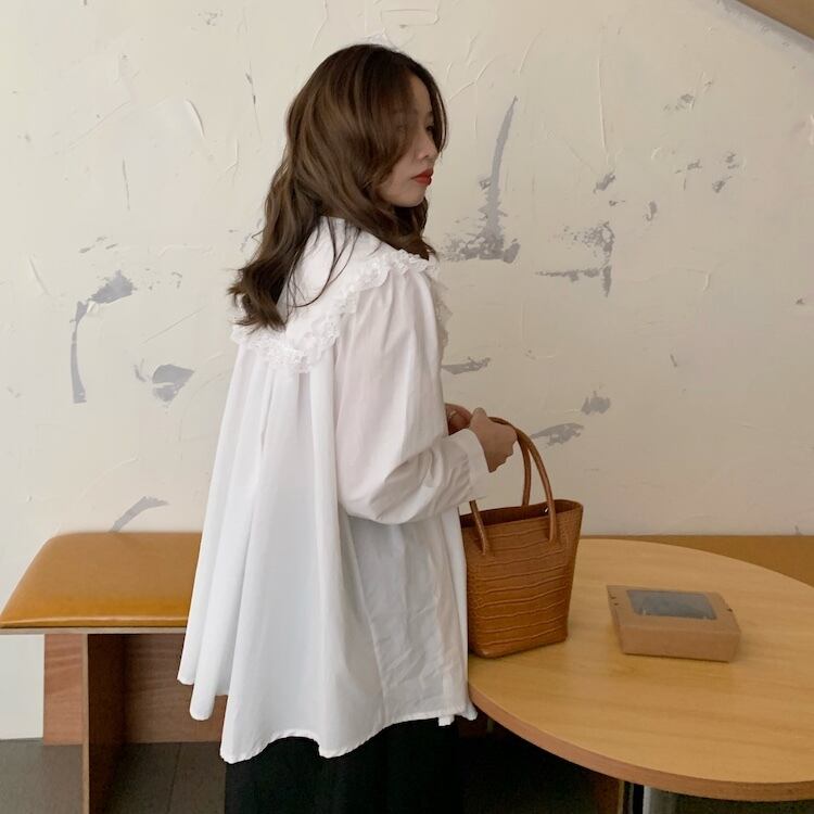 レースルーズホワイトシャツ トップス レディース ロング ステッチ 韓国婦人52390108219