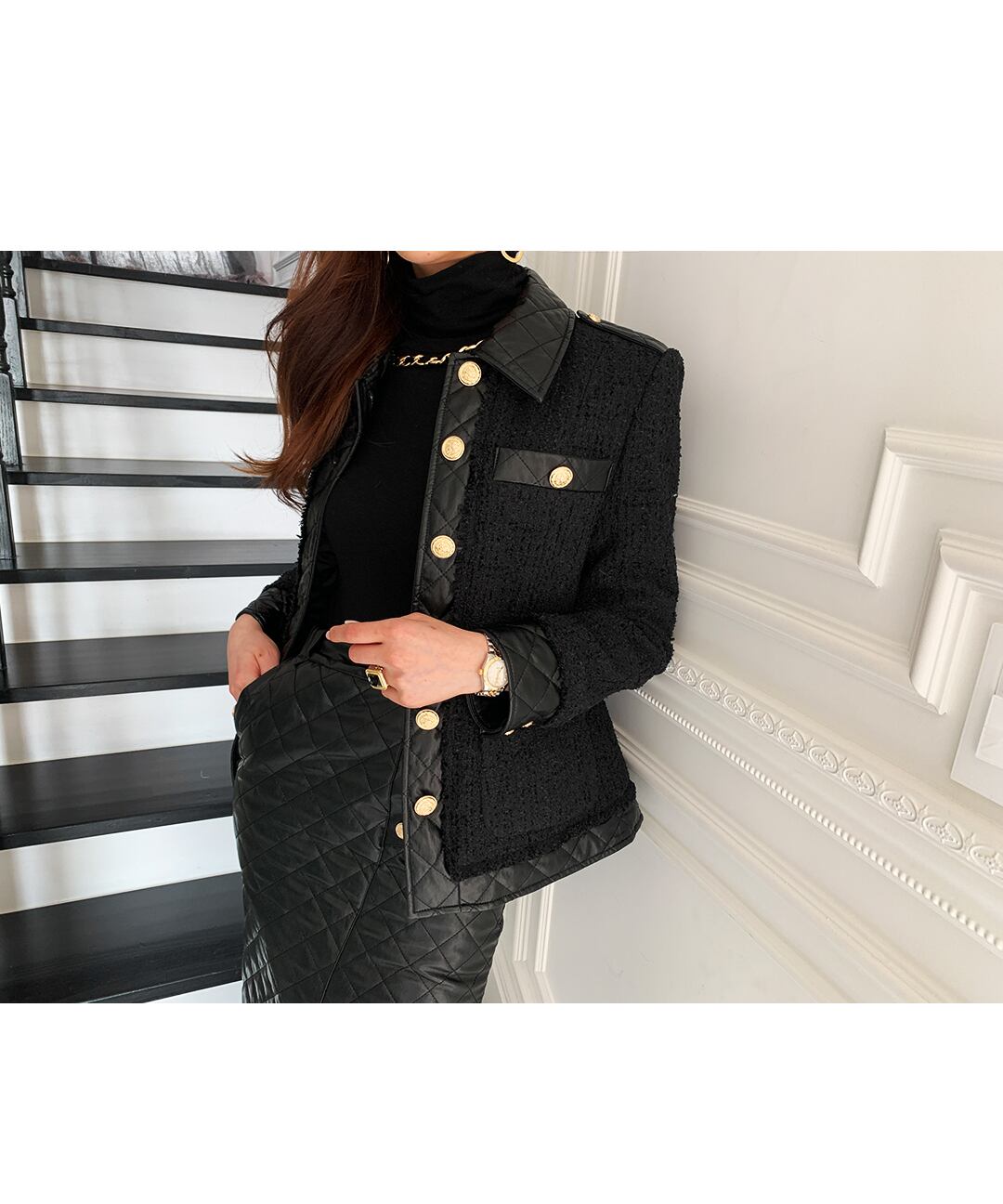 ボタンジャケット スリットスカート ウィンター エレガント 冬物 ステッチ 韓国婦人73890592669